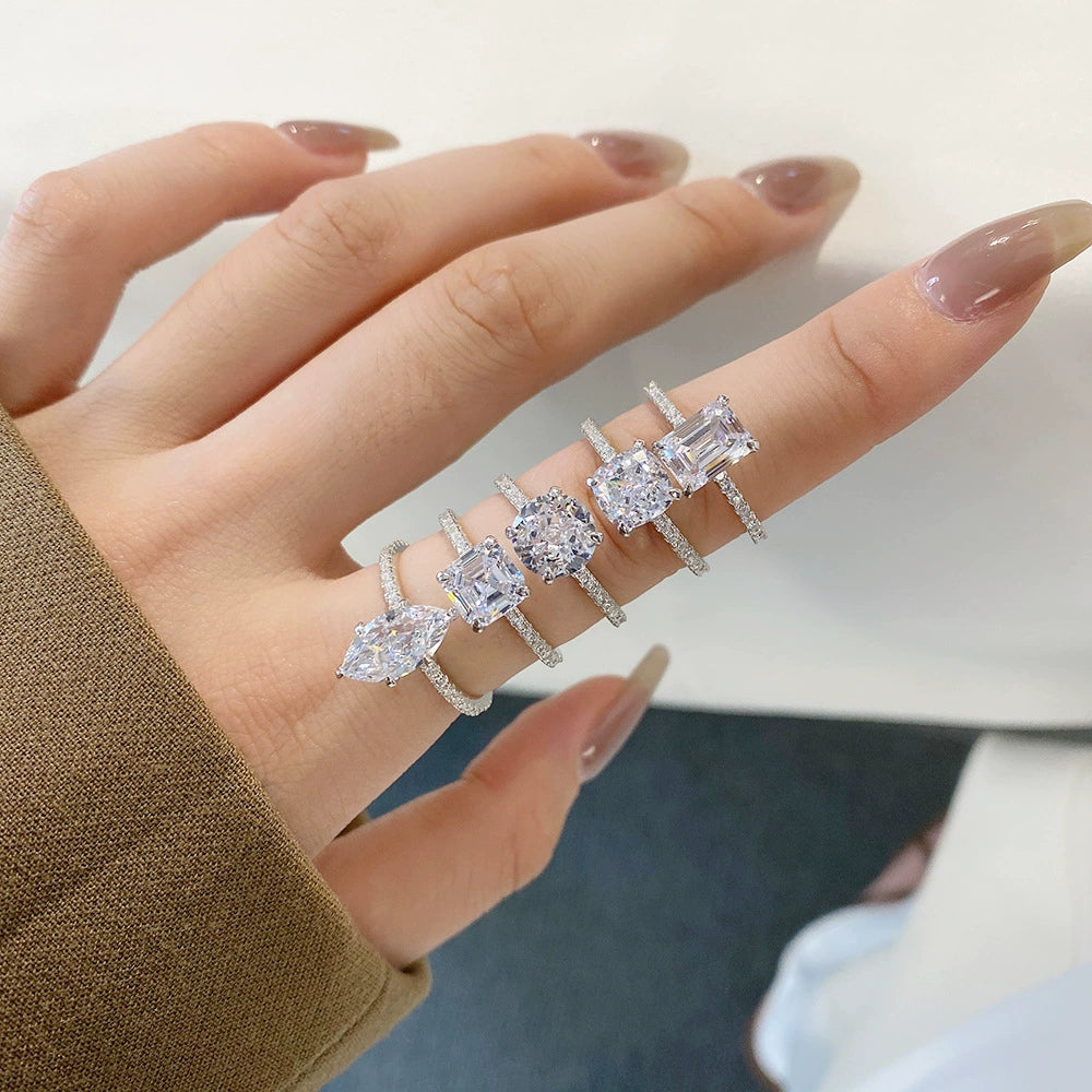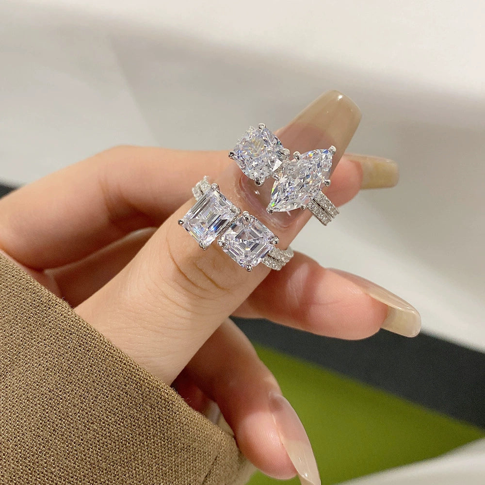 Women's French Vintage S925 Sterling Silver Geometric Ring With High Carbon Diamond And Electroplating