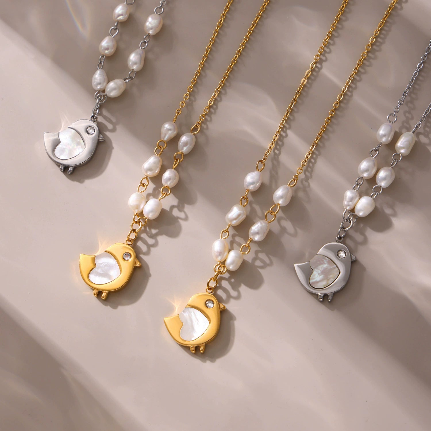 Women's Light Luxury Geometric Stainless Steel Shell Freshwater Cultured Pearl Necklace With Titanium Steel Pendant And Electroplating