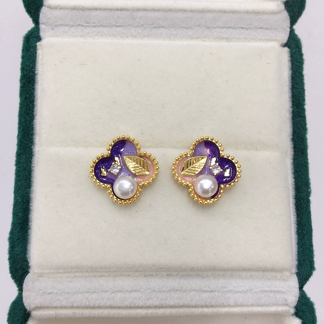 Women's Natural Freshwater Pearl Earrings Oil Painting Painted Antique Style 18K Goldfilled