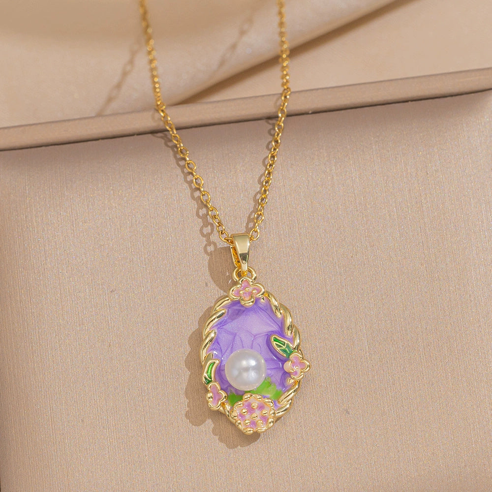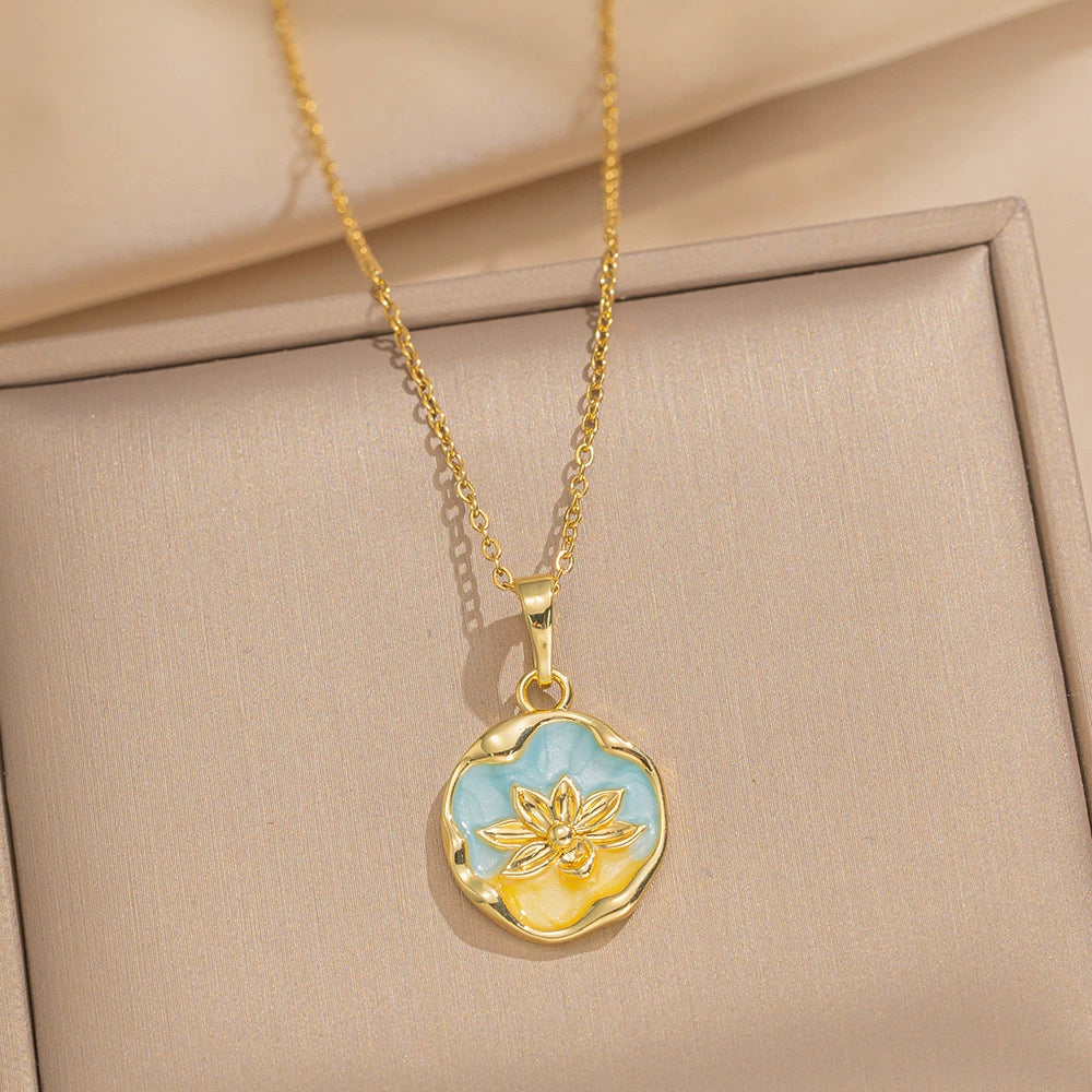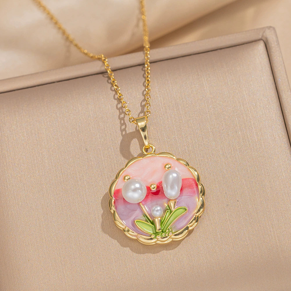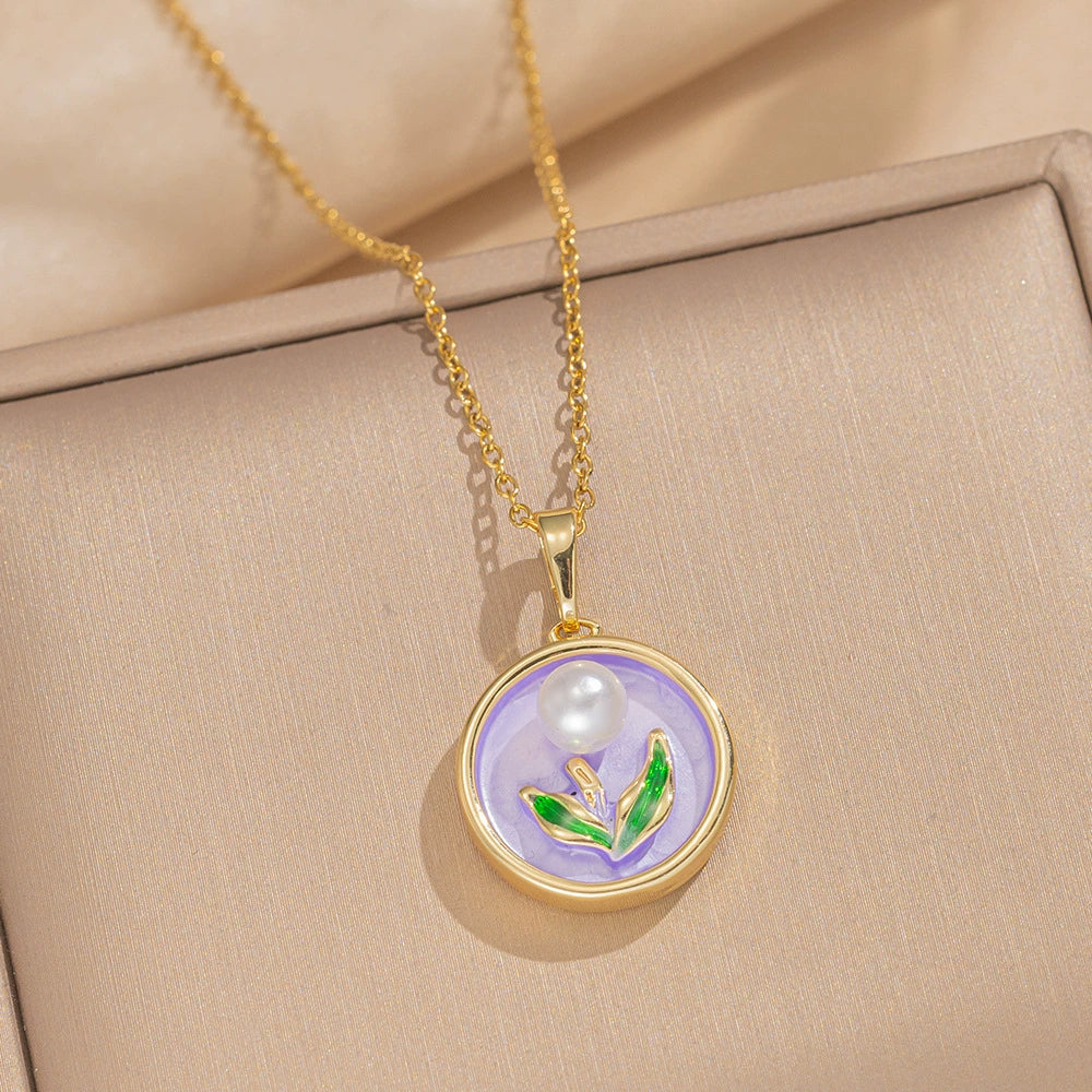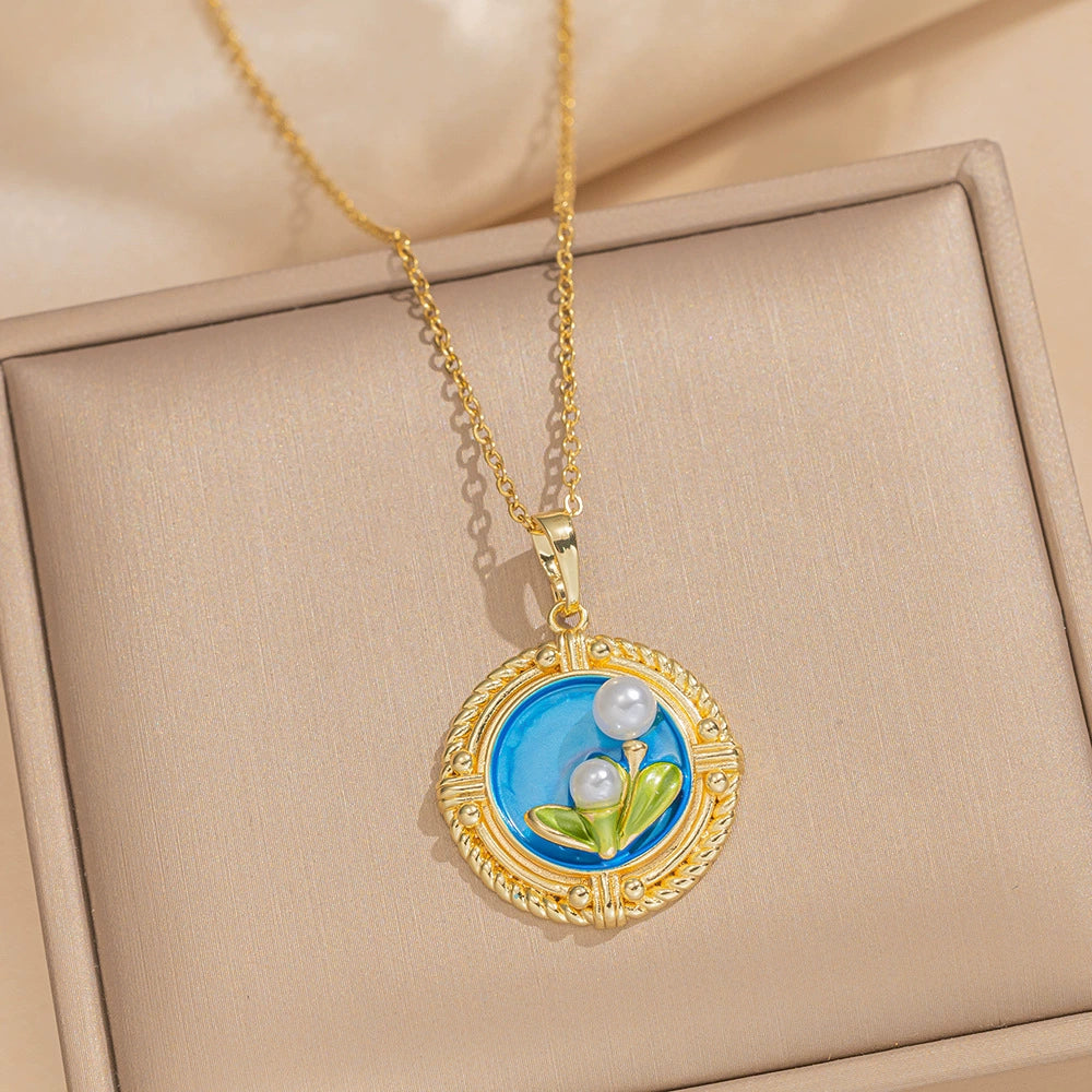 Women's Oil Painting Style Leaf Shaped Necklace Copper Titanium Steel Baroque Elegant Niche Light Luxury French Retro Allmatch Electroplated In Vacuum Furnace