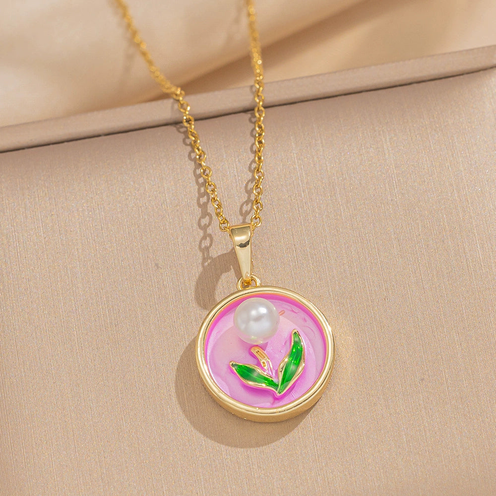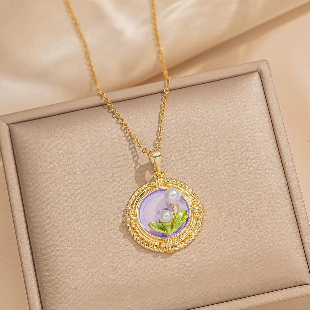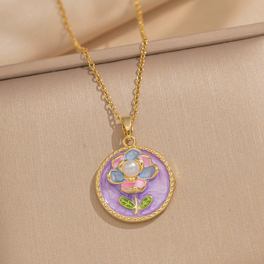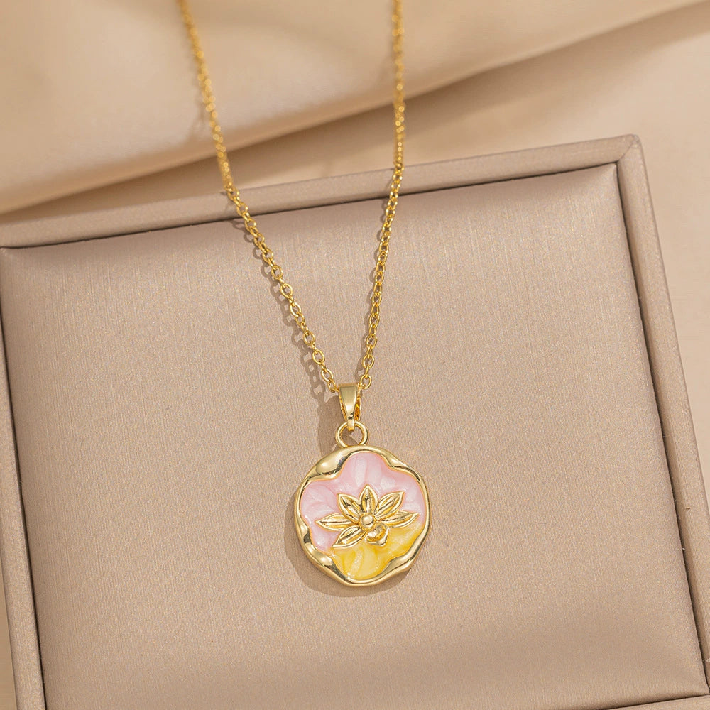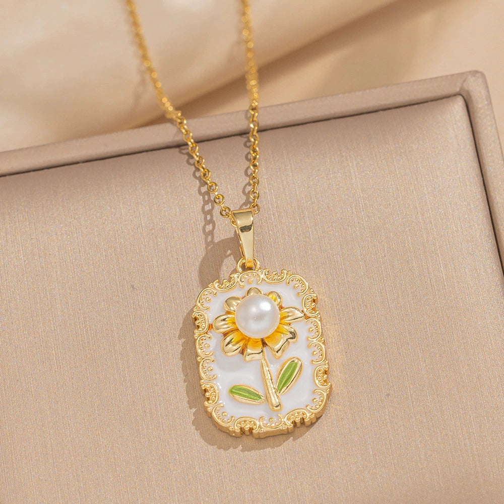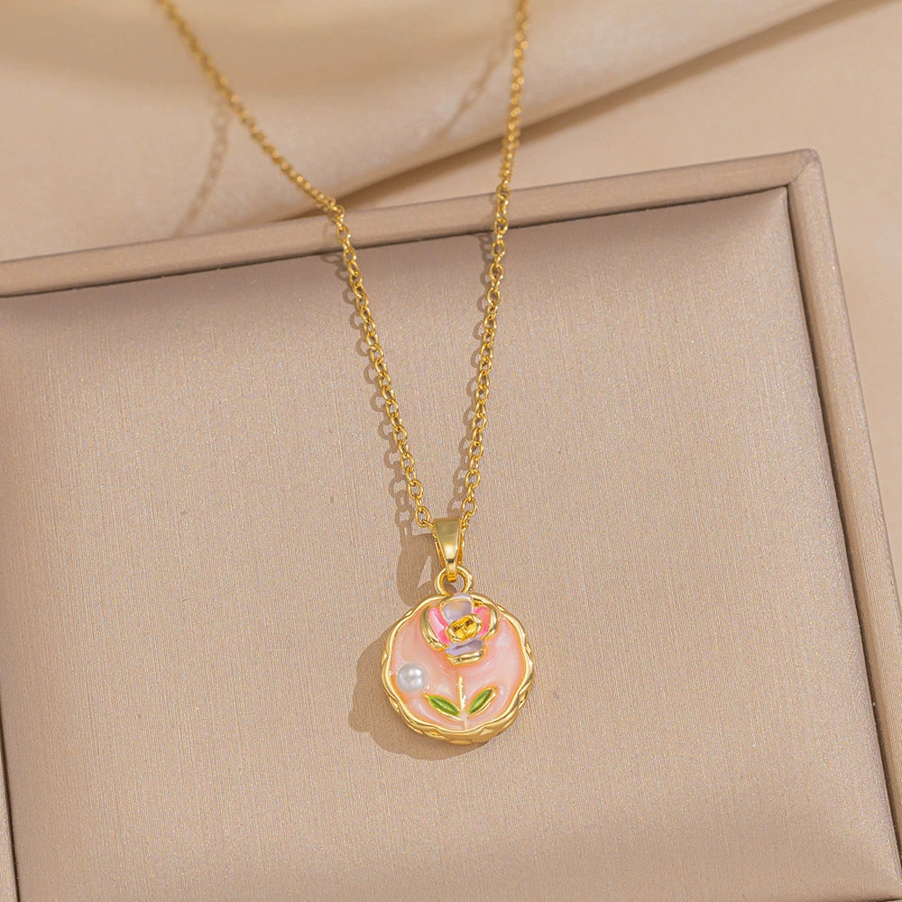 Women's Oil Painting Style Leaf Shaped Necklace Copper Titanium Steel Baroque Elegant Niche Light Luxury French Retro Allmatch Electroplated In Vacuum Furnace