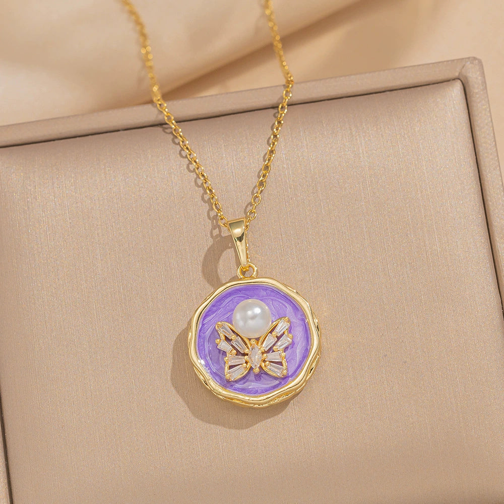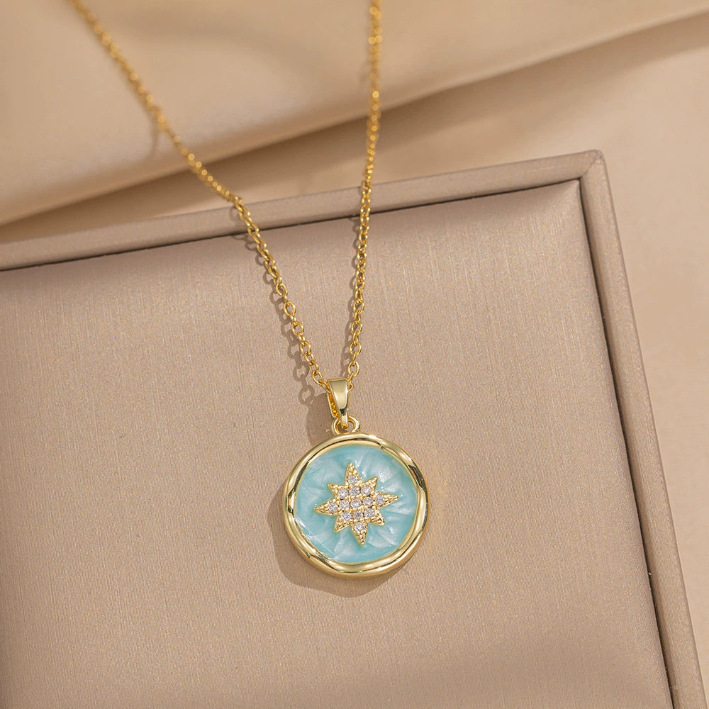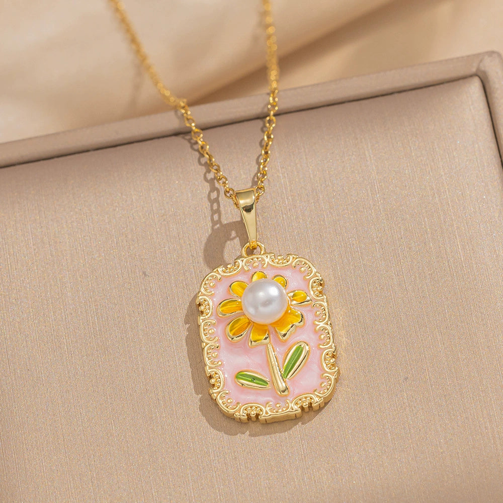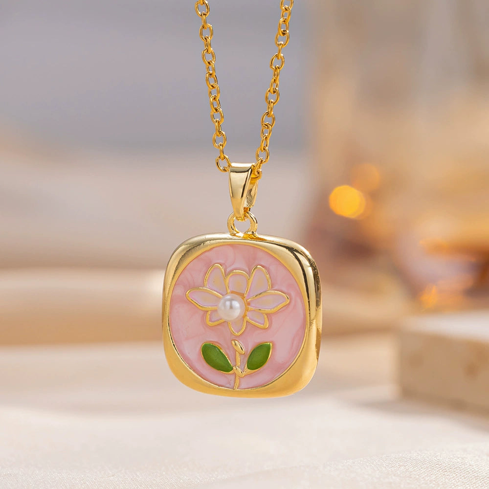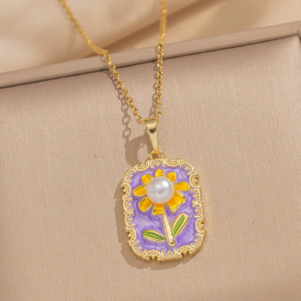 Women's Oil Painting Style Leaf Shaped Necklace Copper Titanium Steel Baroque Elegant Niche Light Luxury French Retro Allmatch Electroplated In Vacuum Furnace