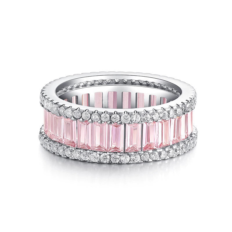 Women's S925 Sterling Silver Geometric Ring With High Carbon Diamond Electroplating
