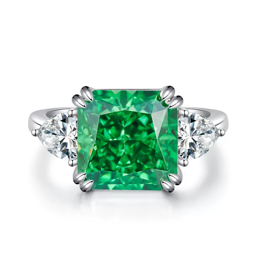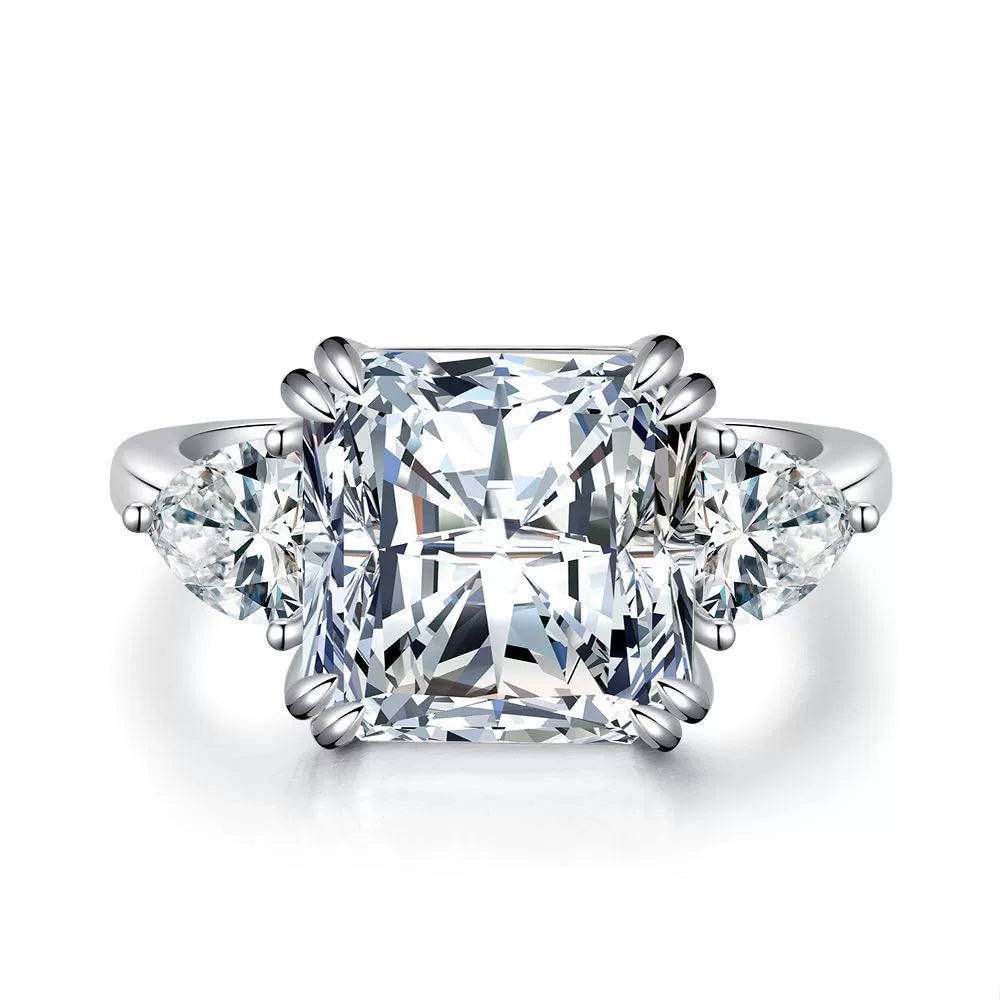 Women's S925 Sterling Silver Square Geometric Light Luxury Ring With Ice Flower Cut Zircon And High Carbon Diamond Electroplated