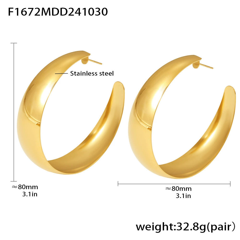 Women's 316L Stainless Steel Geometric Exaggerated Big Circle Earrings 18K Gold Plated