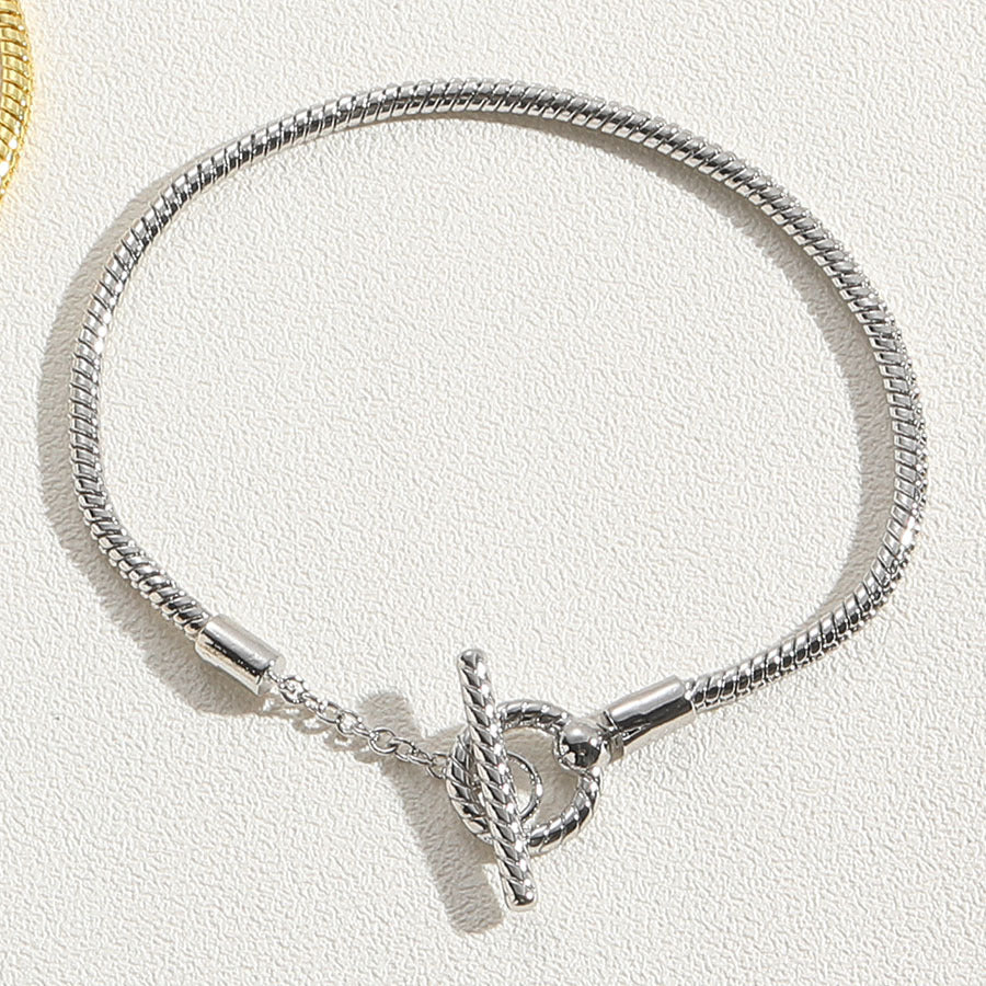 [Product Name] Cross-border hot-selling snake bone chain love geometric cylindrical lock OT buckle personalized metal bracelet bracelet