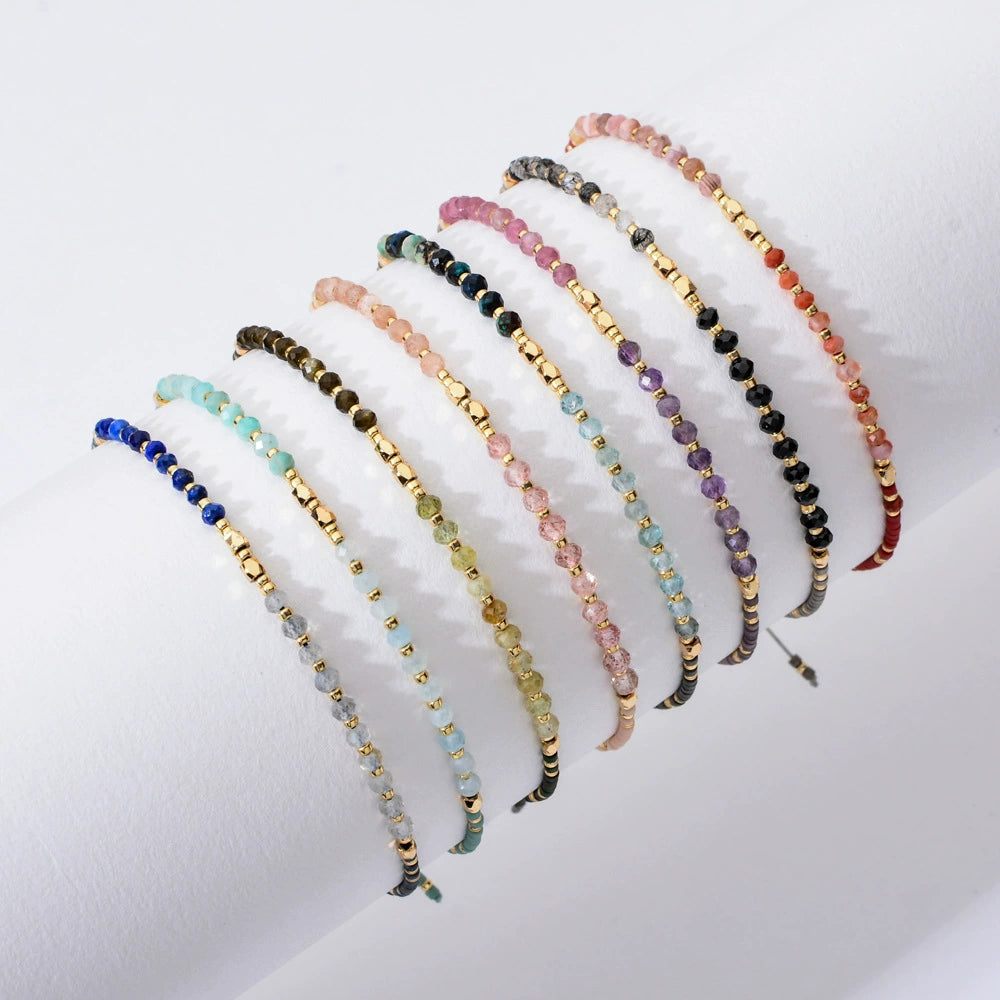 Bohemian Style Agate Natural Stone Women's Bracelet With Miyuki Rice Beads Hand Woven In Geometric Design Glass Glaze Material