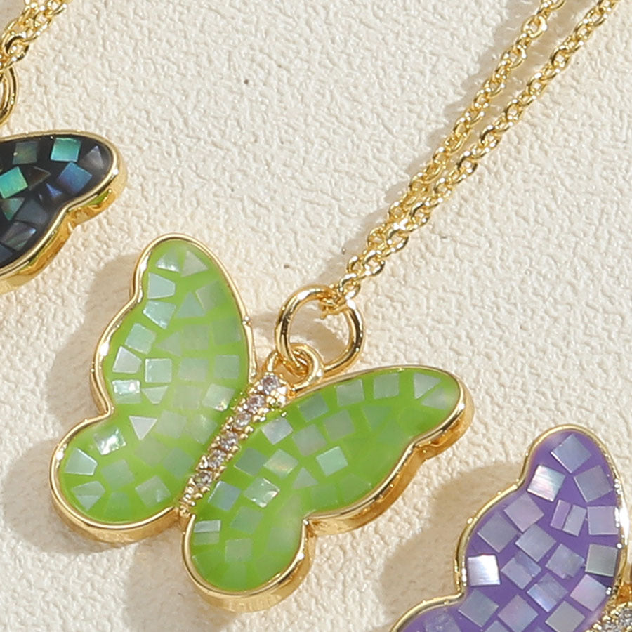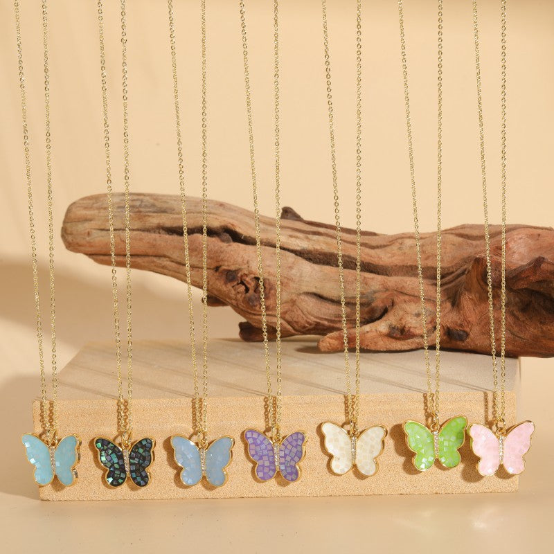 [Product Name] Cross-border hot-selling oil-drop shell zircon butterfly necklace