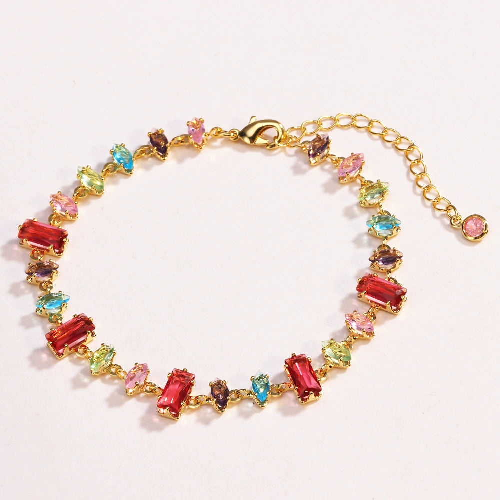 Fashion Women's Artificial Crystal Zircon Color Bracelet Set With Diamonds