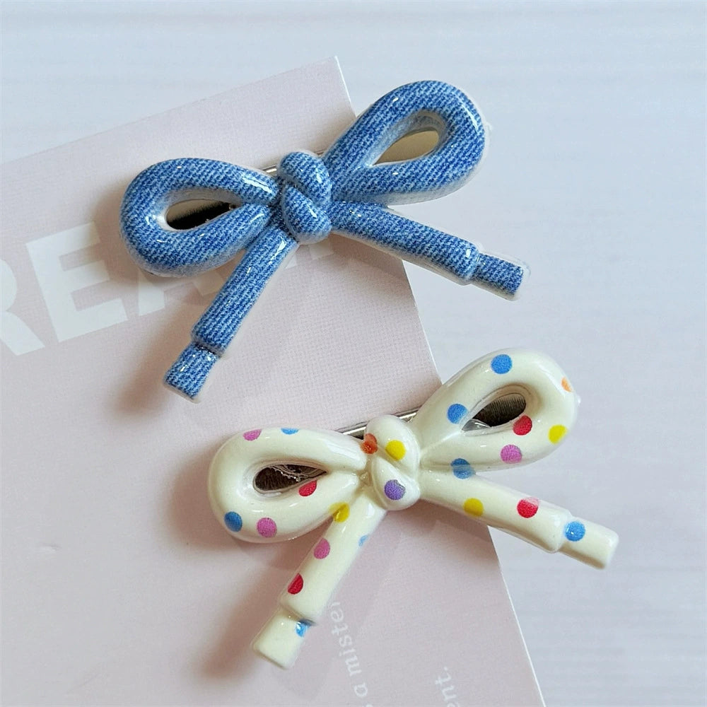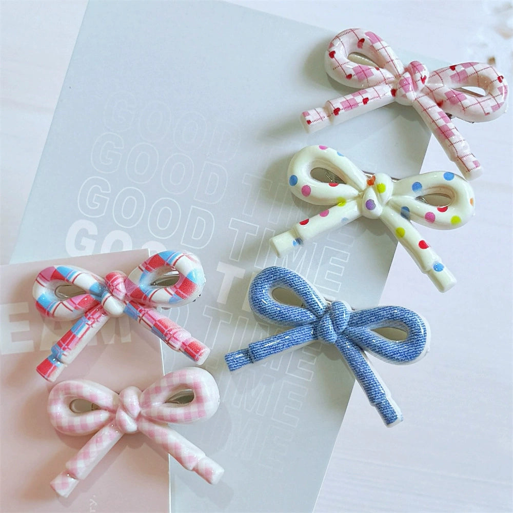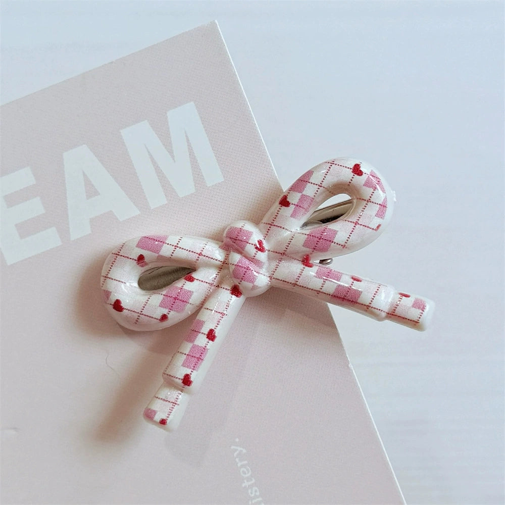 Hairpin Mixed Materials Polka Dot Heart Plaid Handmade