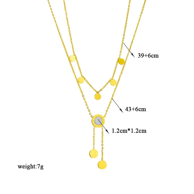 Necklace Doublelayer Roman Round Shell Tassel Titanium Steel Electroplated
