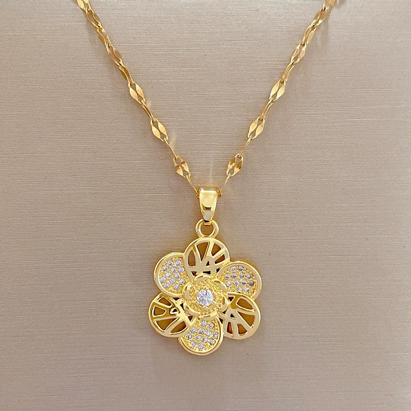 Necklace Stainless Steel Copper Geometric Rotating Flower Electroplating Women's