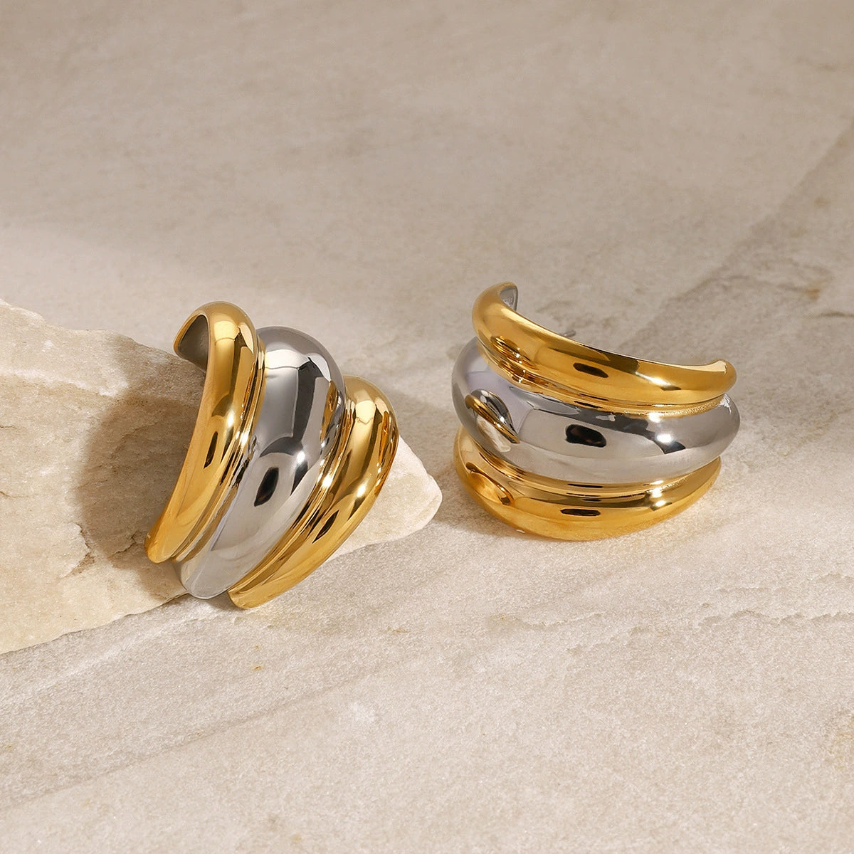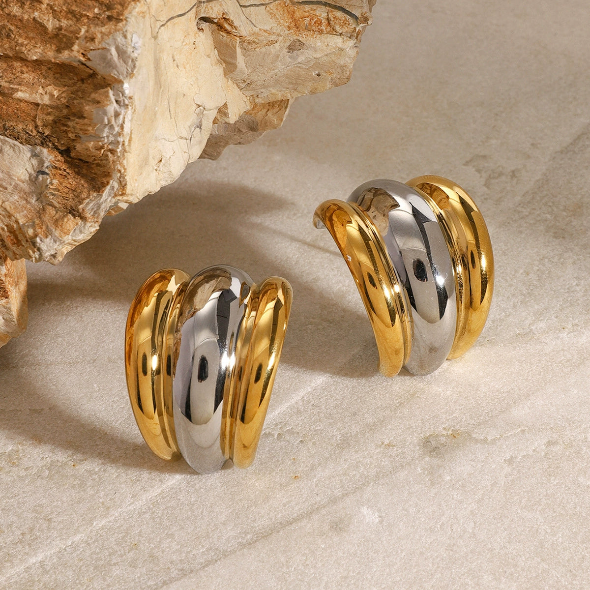 Stainless Steel Gold And Silver Contrast Color Cshaped Electroplated Fashion Women's Earrings