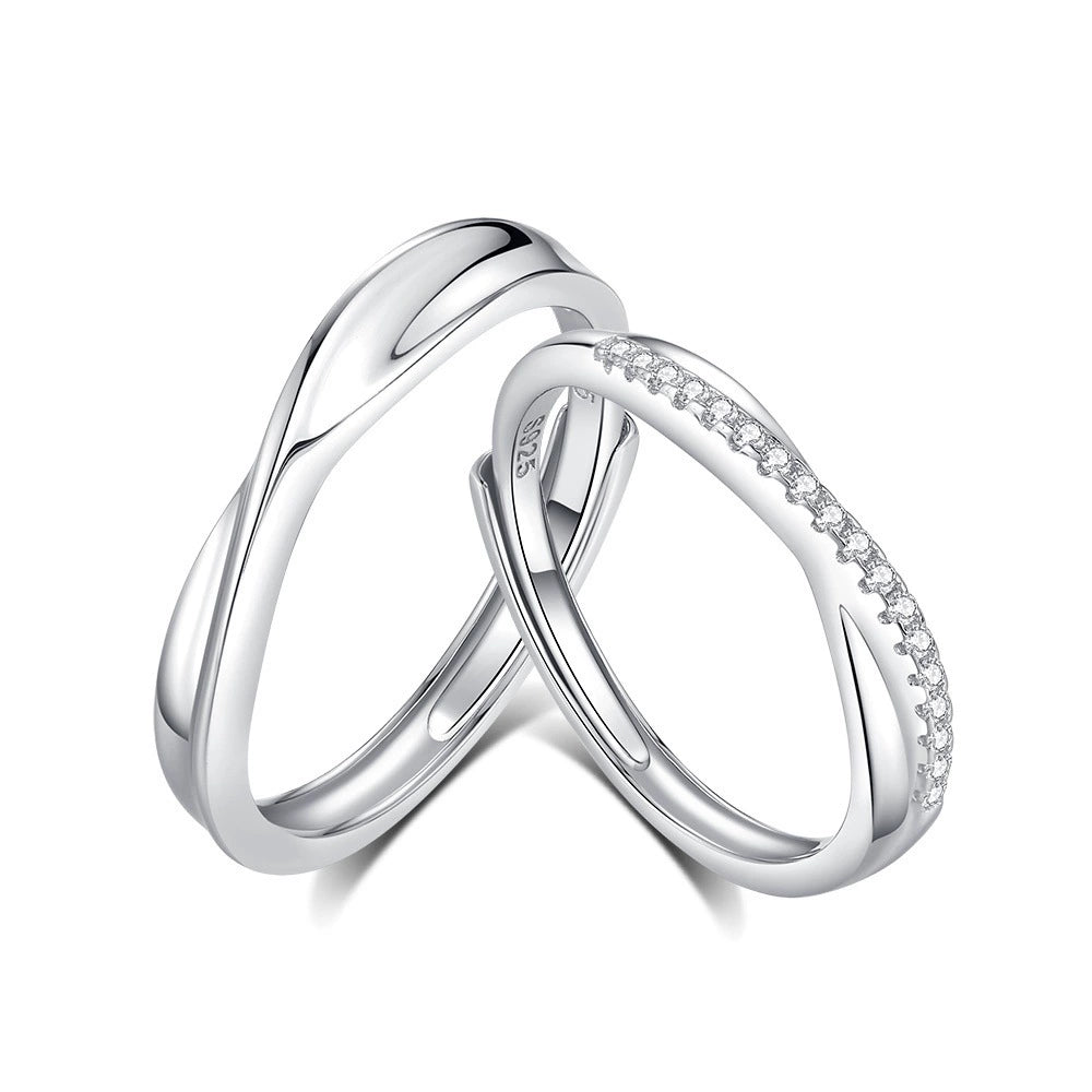 Wholesale Couple Ring 925 Silver Geometric Diamond Zircon Light Luxury Highgrade