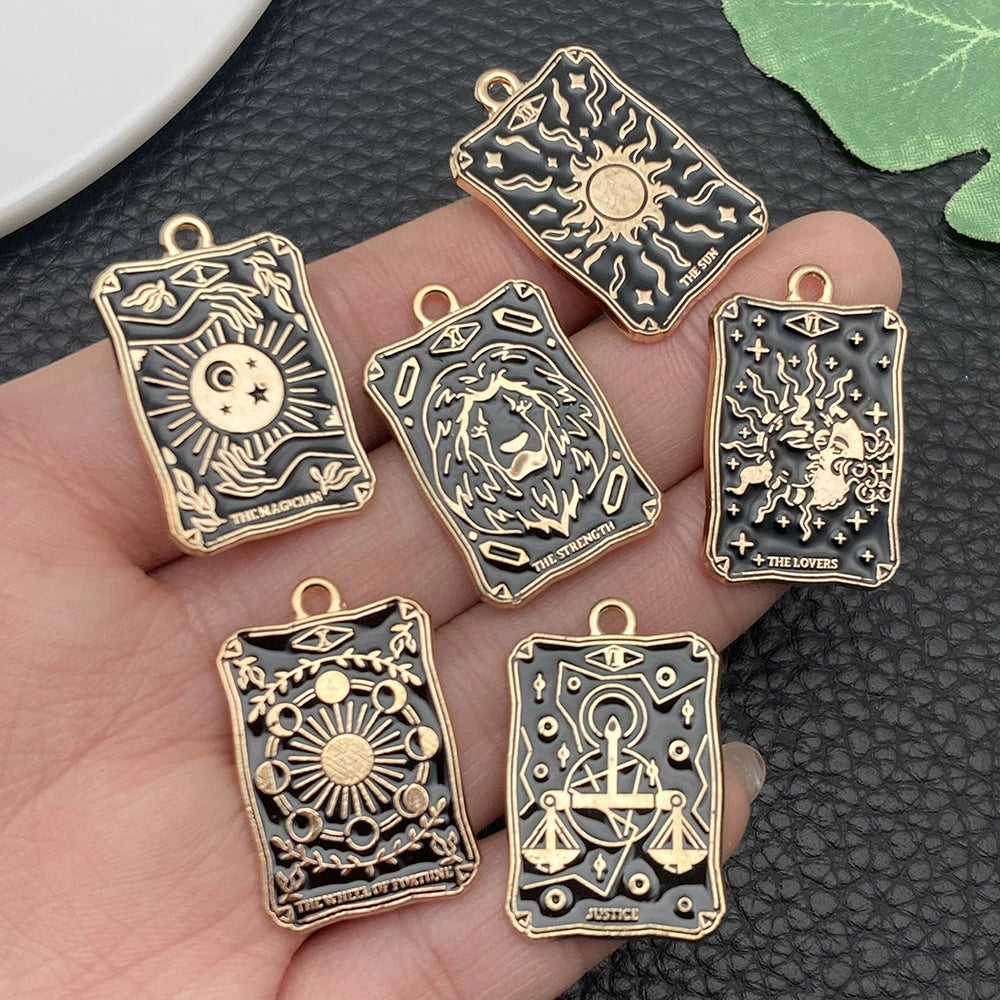Wholesale Diy Jewelry Accessories Zinc Alloy Hanging Pendant Necklace Earrings Keychain Retro Dark Tarot Style Electroplated