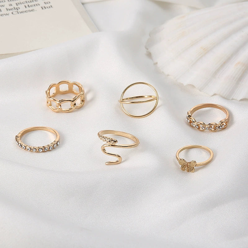 Wholesale Metal Elements Retro Diamond Hollow Butterfly Cross Snake Ring 6 Piece Set Alloy Electroplated For Women