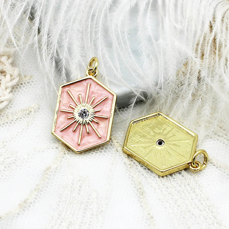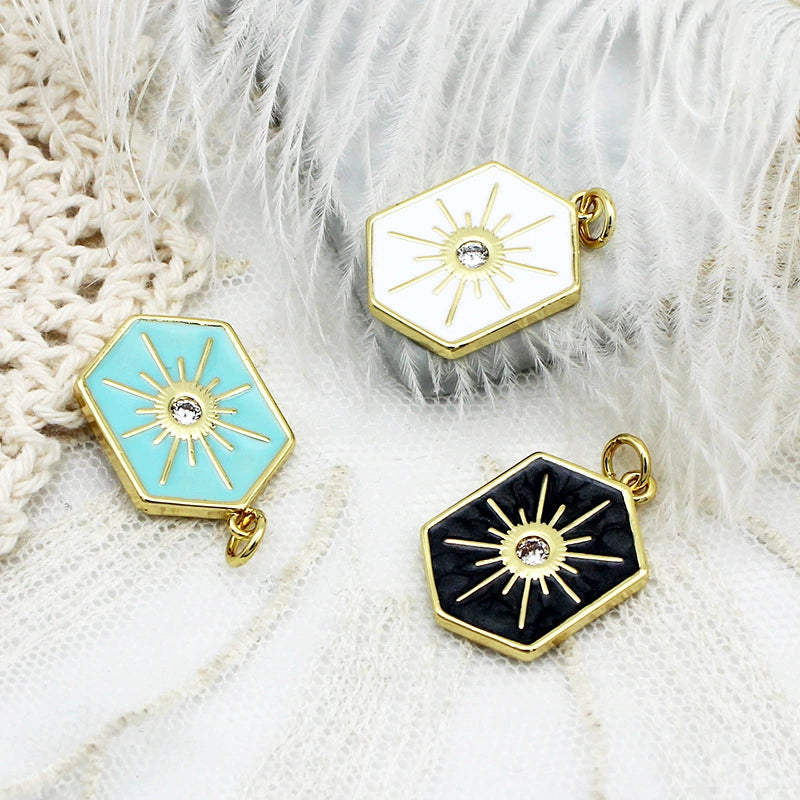 Wholesale Micro Inlaid Hexagonal Sun Pendant Necklace Diy Jewelry Accessories Copper 18K Gold Plated
