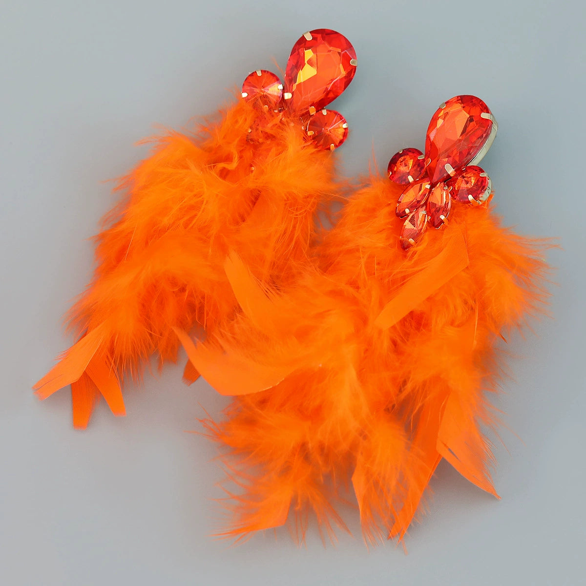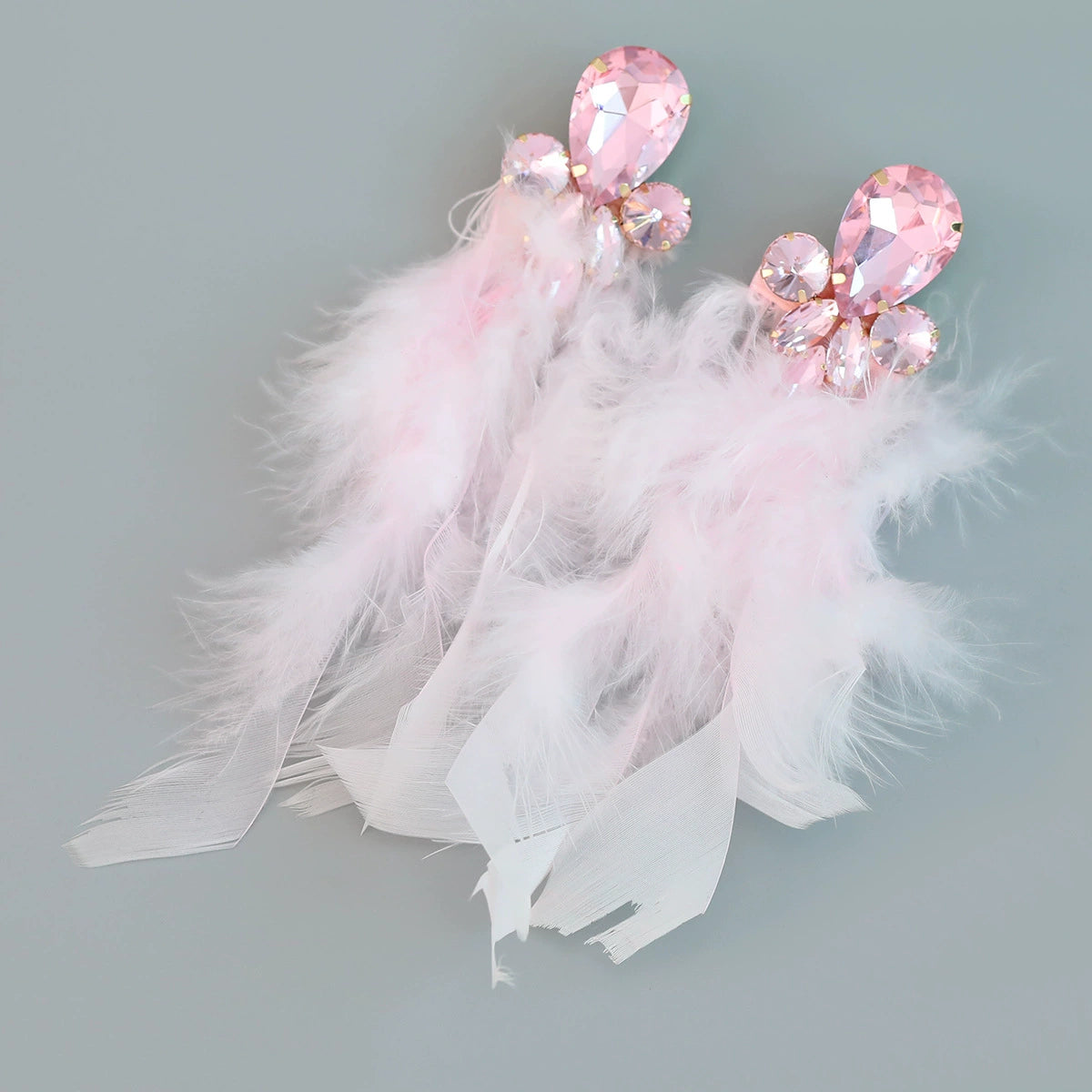 Wholesale Women's Alloy Diamond Geometric Flower Tassel Feather Earrings