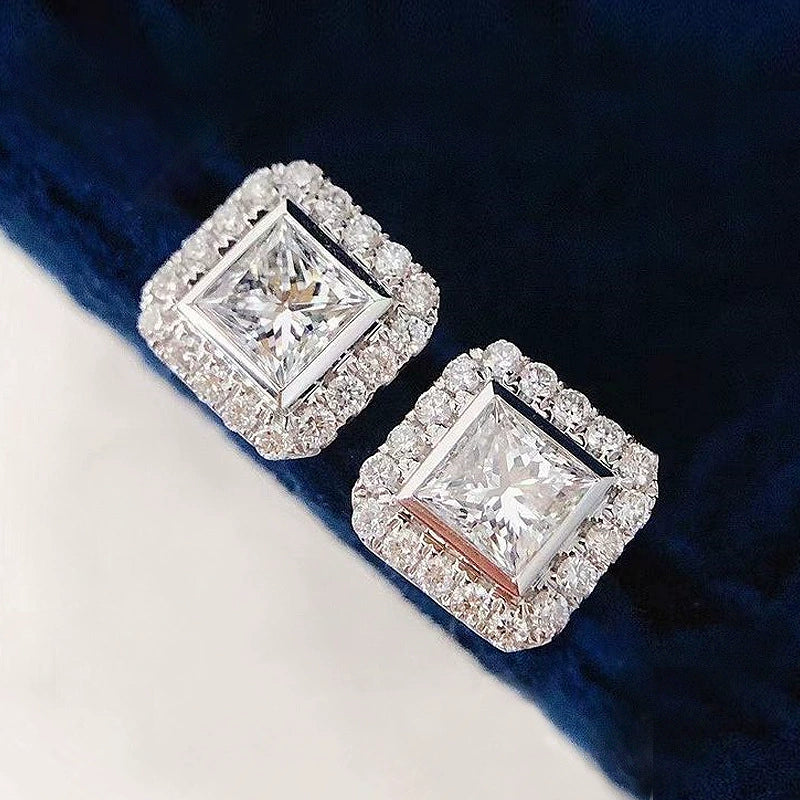 Women's Geometric Square Diamond Zircon Copper Earrings Jewelry