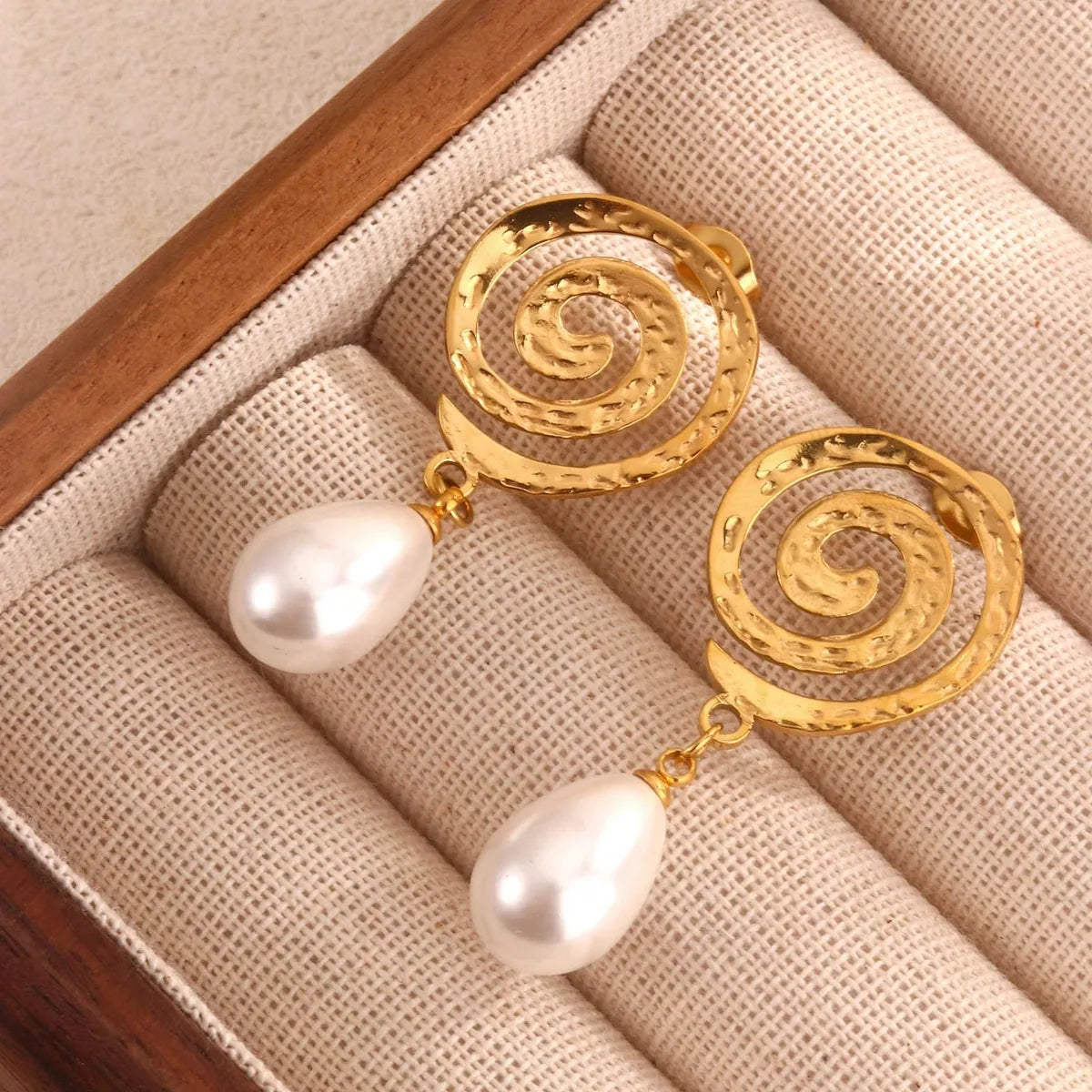 1 Pair Basic Modern Style Classic Style Geometric Spiral Inlay 304 Stainless Steel Artificial Pearls 18K Gold Plated Drop Earrings