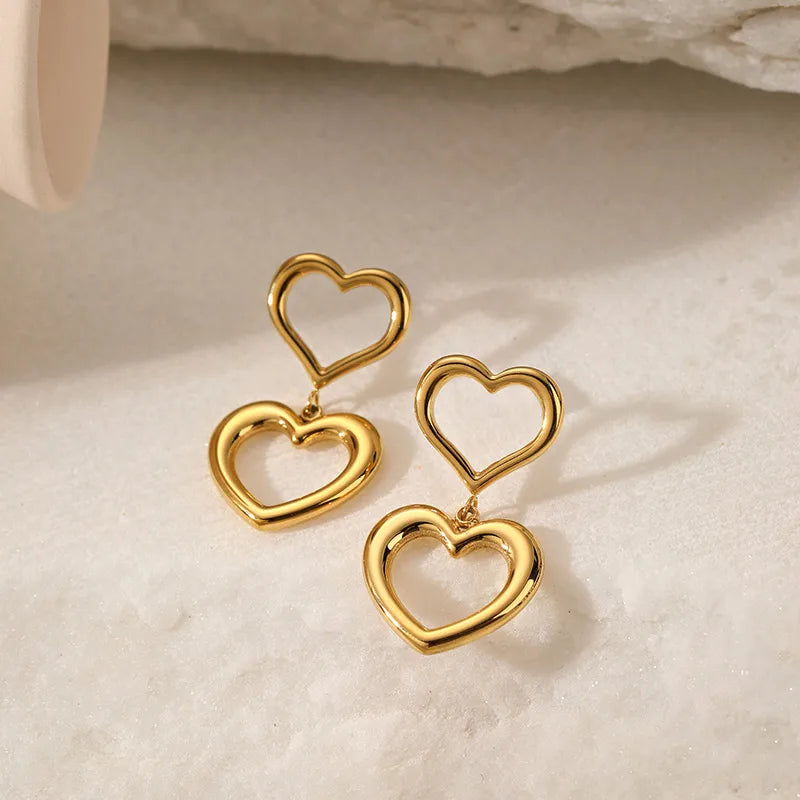 1 Pair Basic Simple Style Classic Style Heart Shape Plating 304 Stainless Steel 18K Gold Plated Drop Earrings