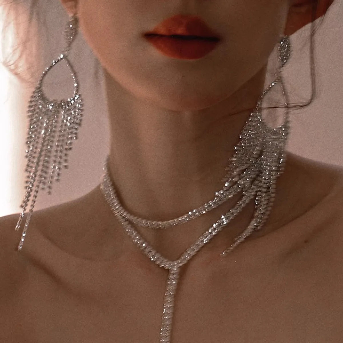 1 Pair Classic Style Tassel Rhinestone Drop Earrings