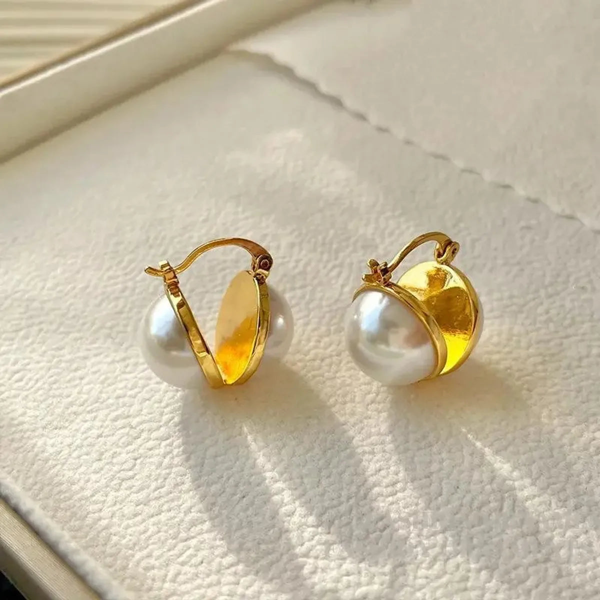 1 Pair Elegant Heart Shape Plating Inlay Copper Artificial Pearls 18k Gold Plated White Gold Plated Earrings