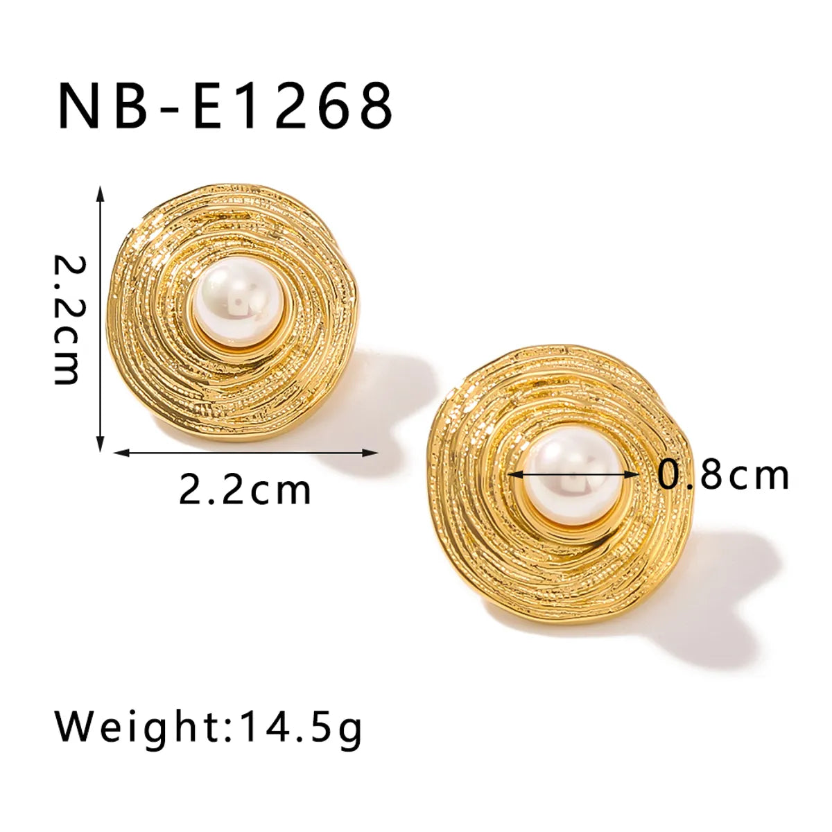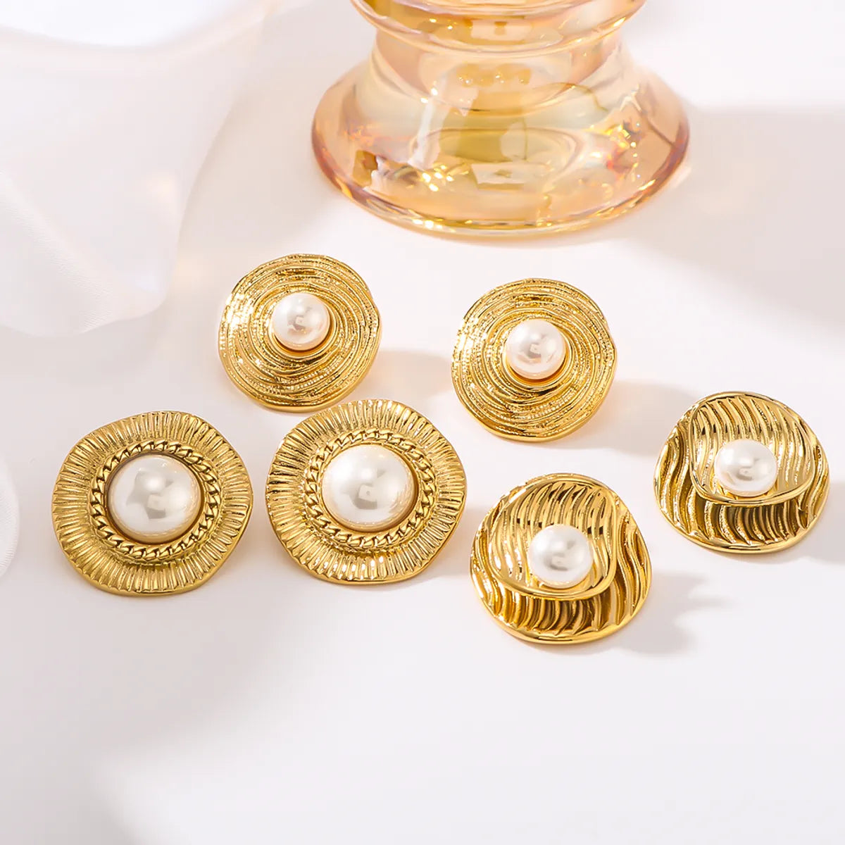 1 Pair Elegant Romantic Round Plating Inlay 304 Stainless Steel Artificial Pearls 18K Gold Plated Ear Studs