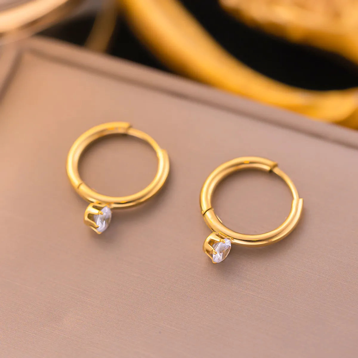 1 Pair Elegant Round Inlay 304 Stainless Steel Artificial Rhinestones 18K Gold Plated Earrings