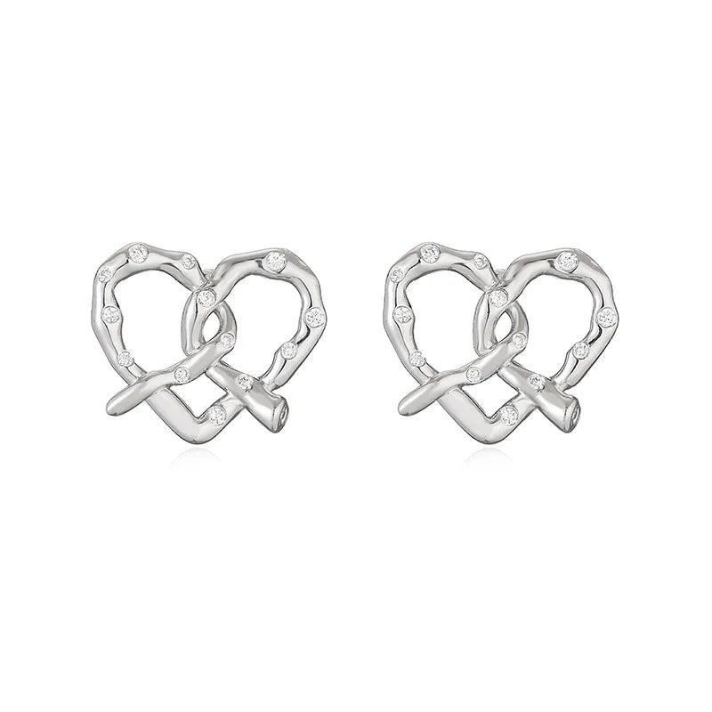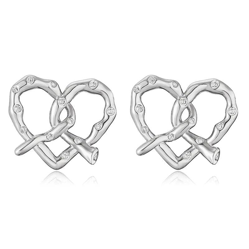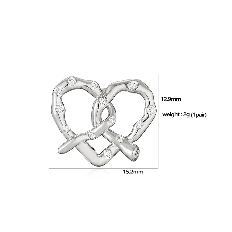 1 Pair Elegant Vintage Style Classic Style Heart Shape Alkaline Junction Knot Plating Inlay Copper Zircon 18K Gold Plated Ear Studs