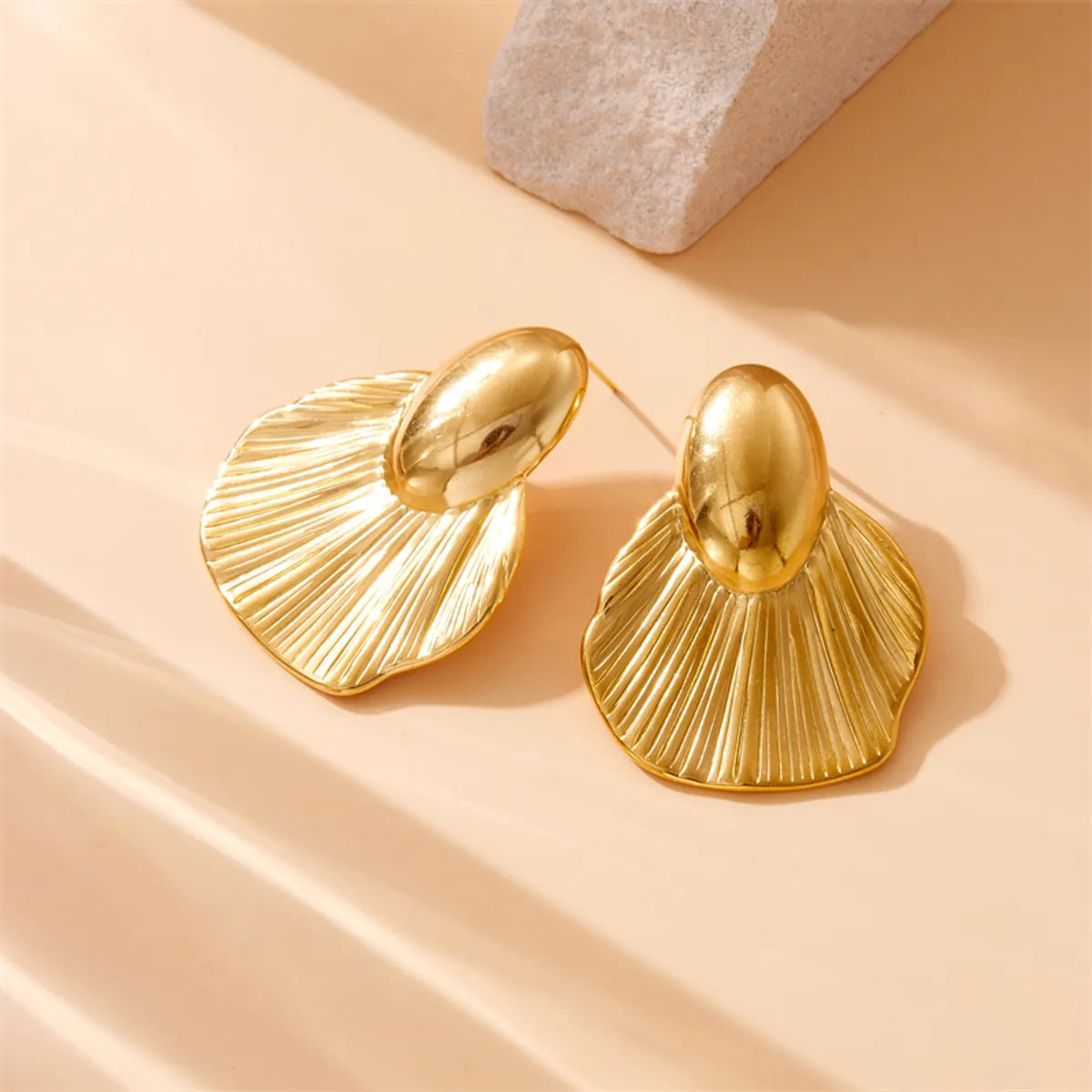 1 Pair French Style Sector Pleated 304 Stainless Steel 18K Gold Plated Ear Studs