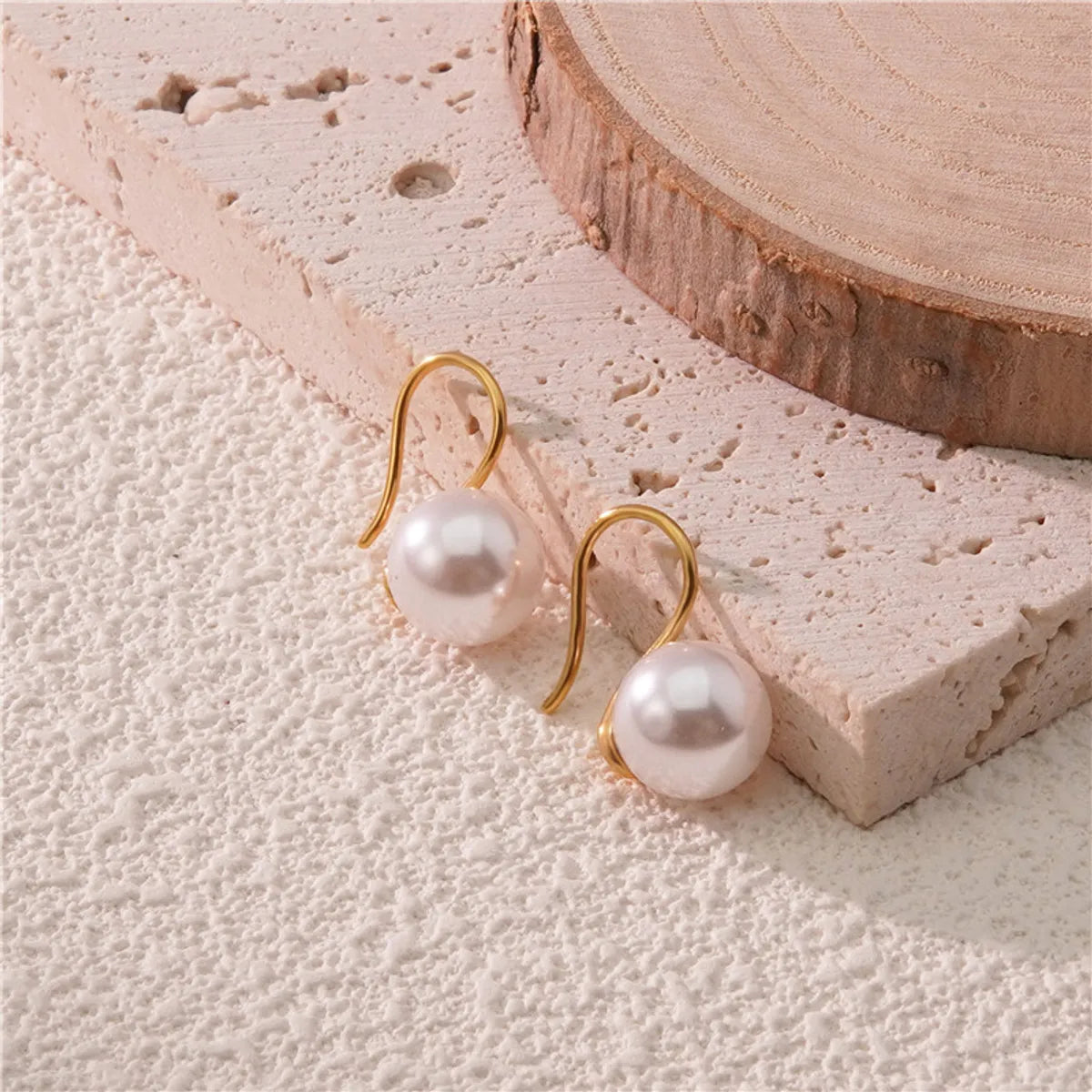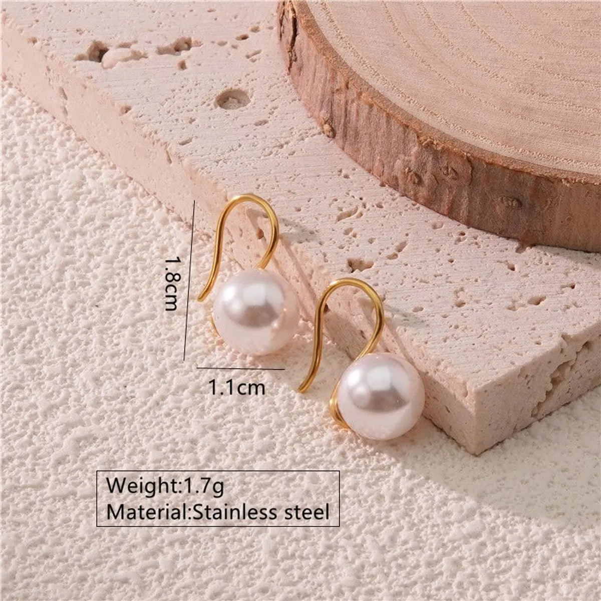 1 Pair French Style Sweet Simple Style Round Flower Inlay 304 Stainless Steel Artificial Pearls 18K Gold Plated Ear Studs Ear Hook