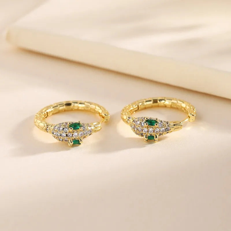 1 Pair Glam Modern Style Snake Plating Inlay Copper Zircon 18K Gold Plated Earrings