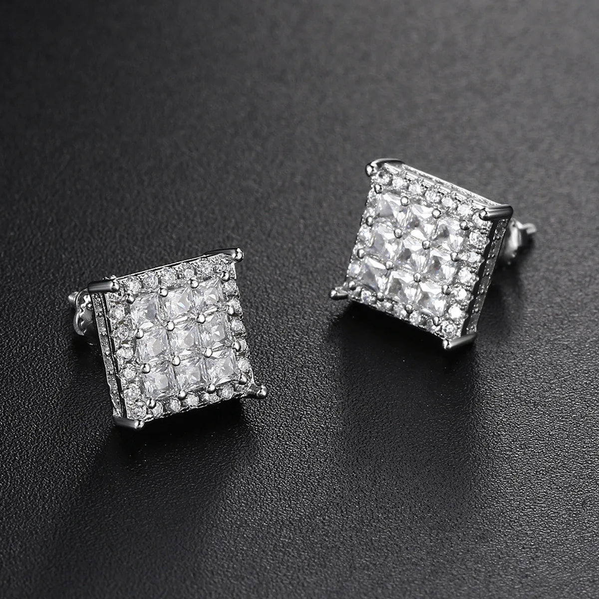 1 Pair Hip-Hop Square Plating Inlay Copper Zircon Ear Studs