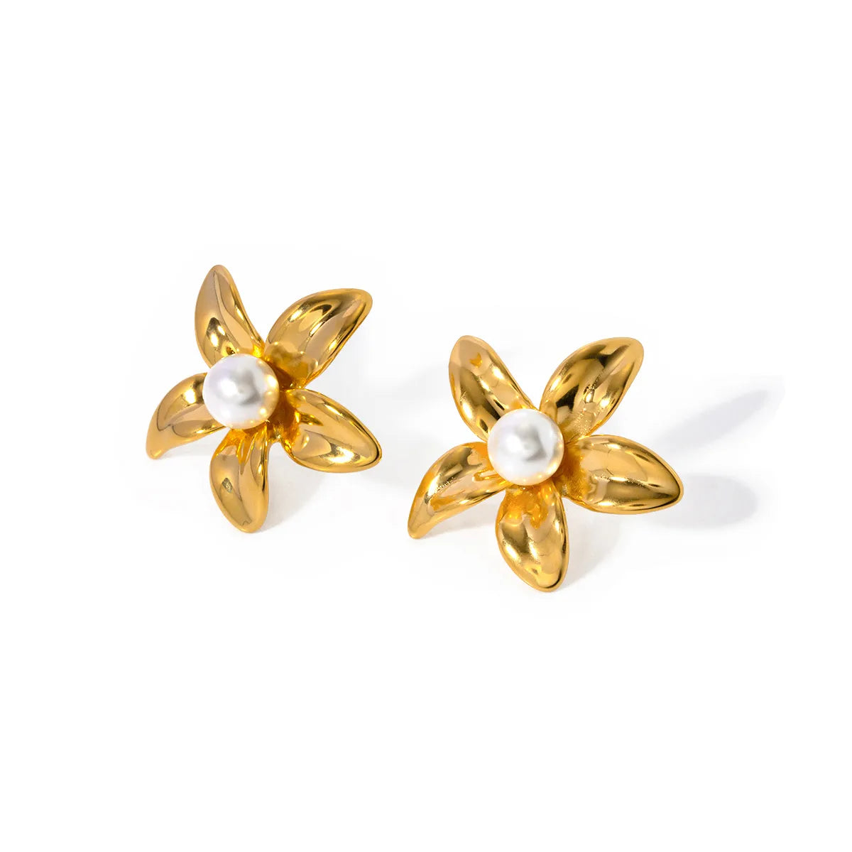 1 Pair IG Style Simple Style Flower Inlay 304 Stainless Steel Pearl 18K Gold Plated Ear Studs