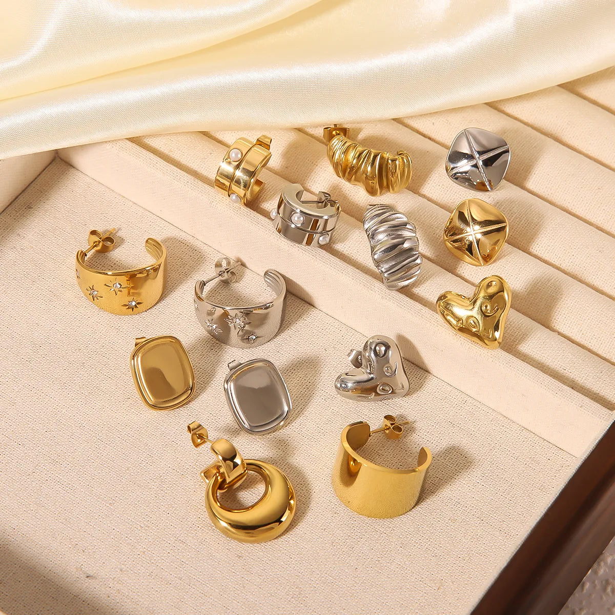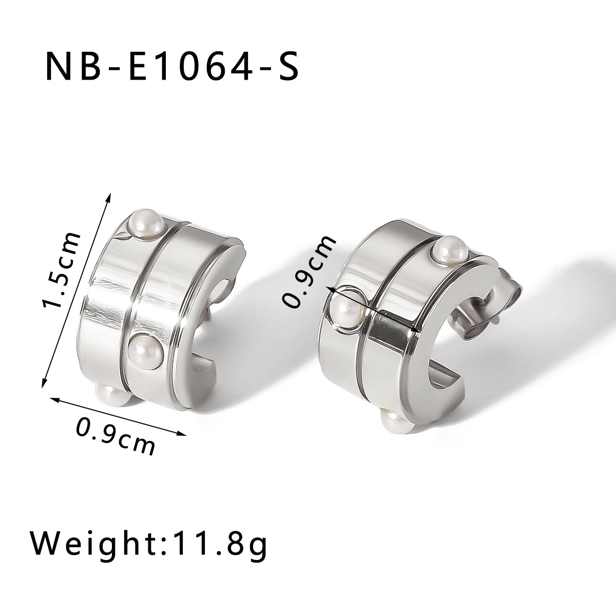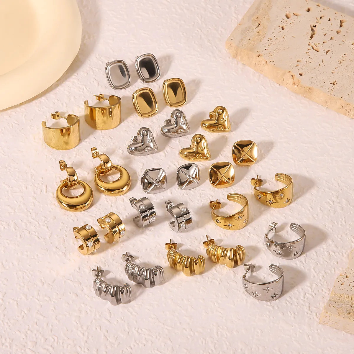 1 Pair Ig Style Vintage Style C Shape Heart Shape Lingge Plating Pleated Inlay Stainless Steel Pearl Zircon 18k Gold Plated Gold Plated Ear Studs