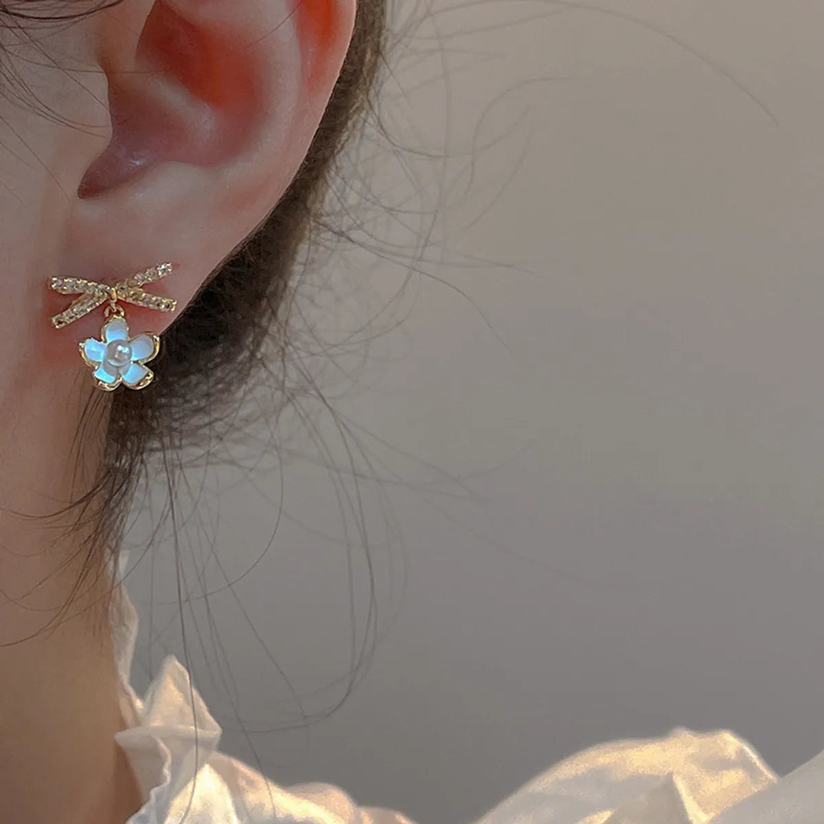 1 Pair Lady Heart Shape Inlay Imitation Pearl Alloy Artificial Gemstones Drop Earrings