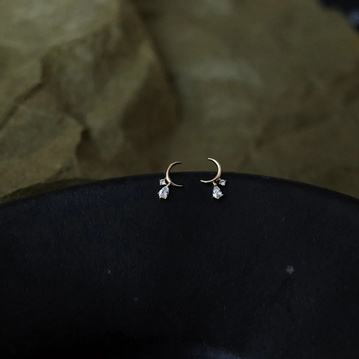 1 Pair Lady Star Moon Sterling Silver Inlay Zircon Ear Studs
