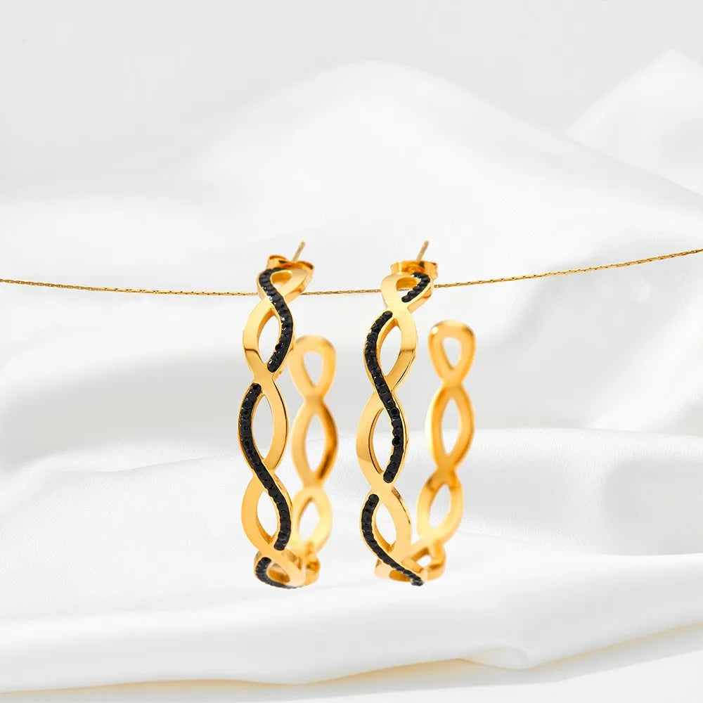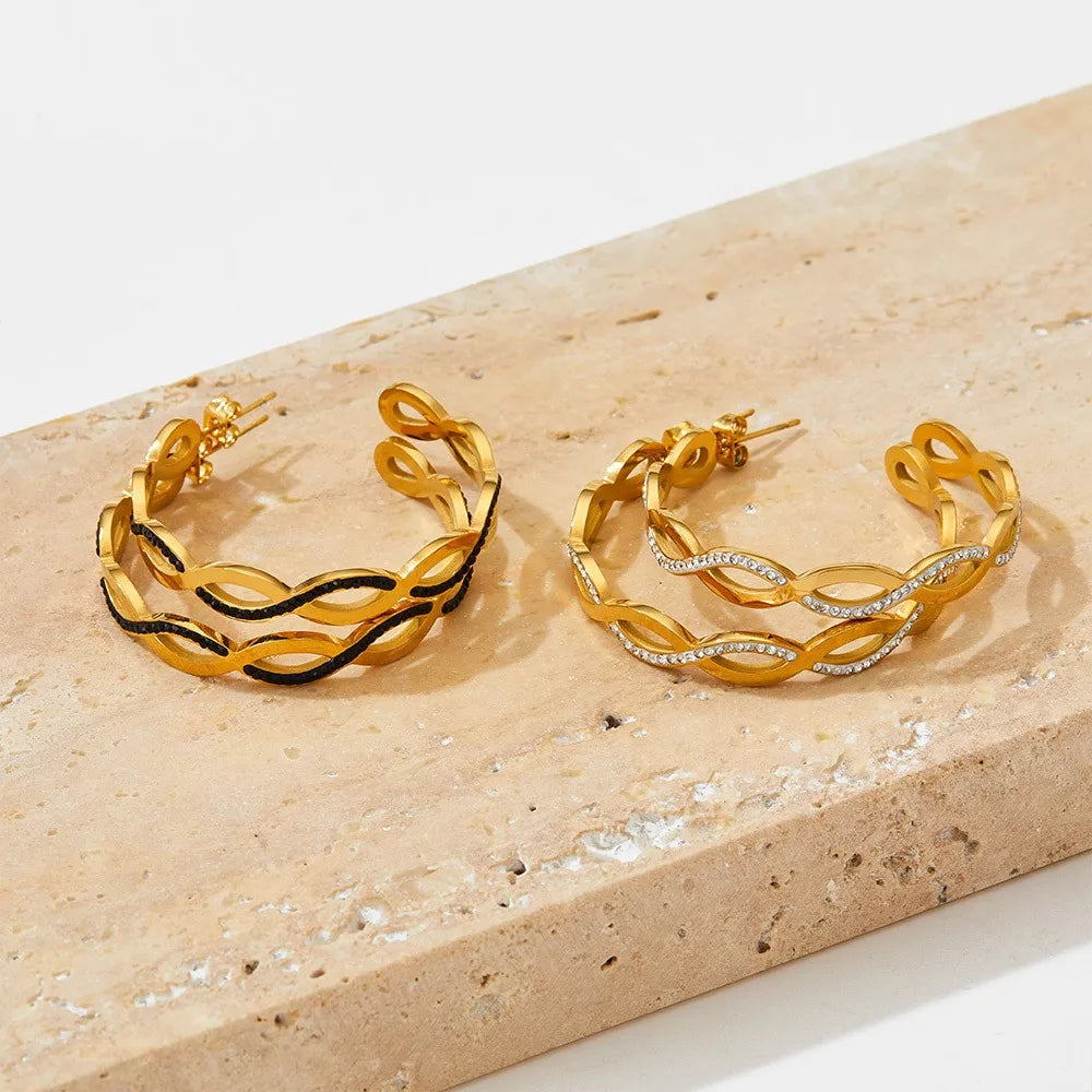 1 Pair Modern Style Artistic C Shape Hollow Out Inlay 304 Stainless Steel Zircon 16K Gold Plated White Gold Plated Gold Plated Ear Studs