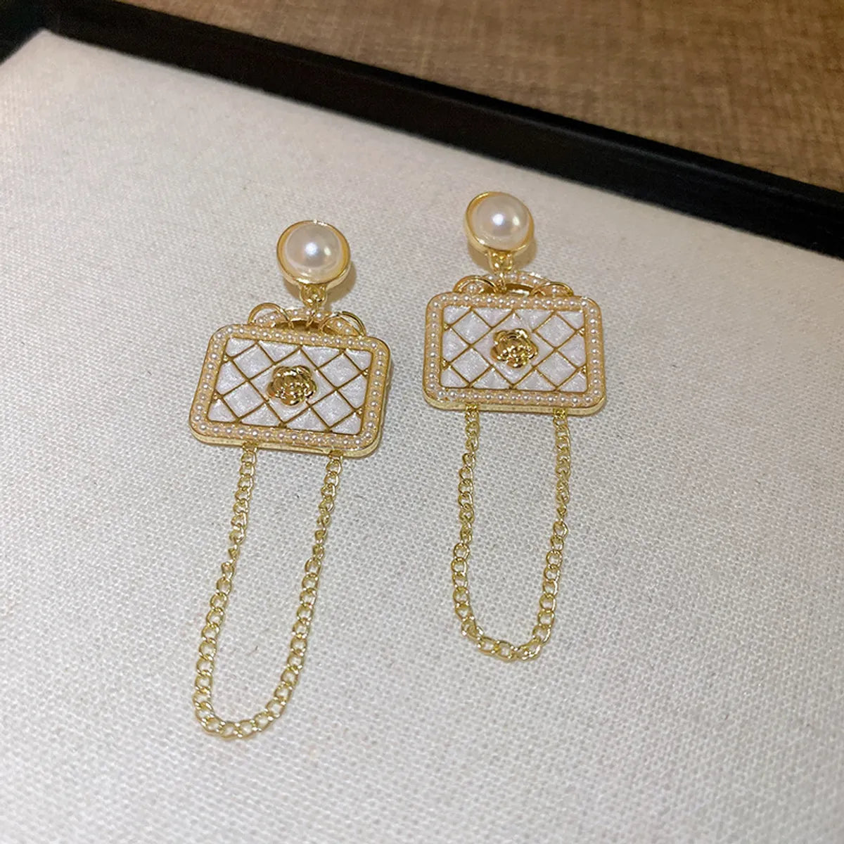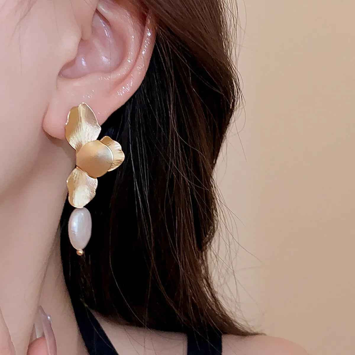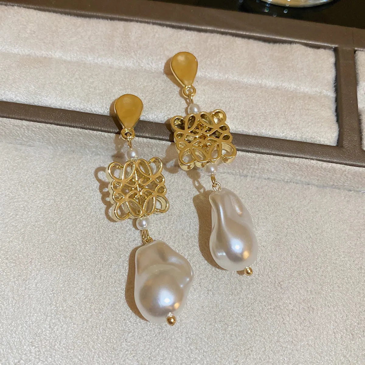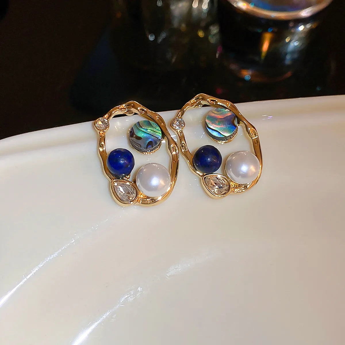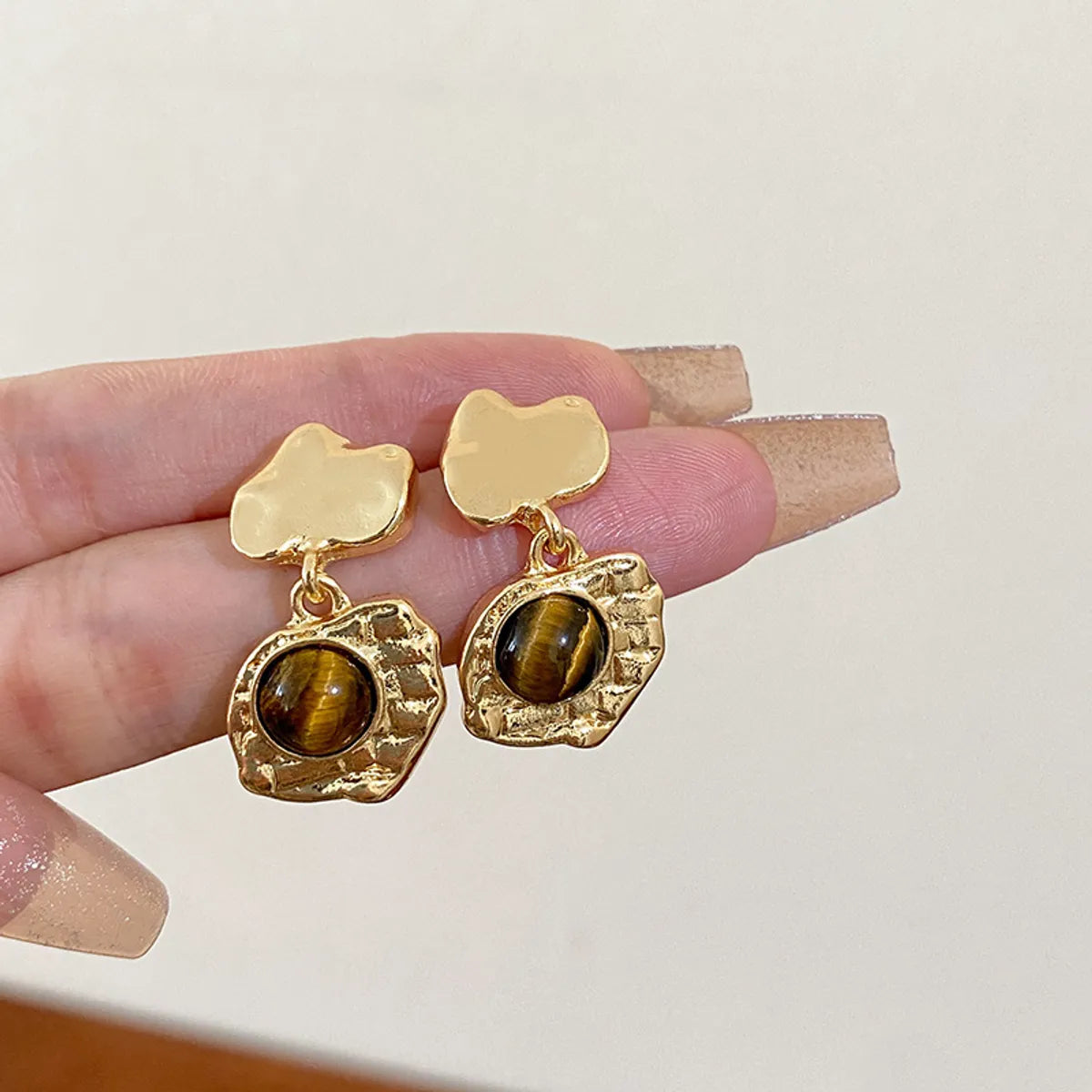 1 Pair Retro French Style Irregular Geometric Oval Inlay Copper Imitation Pearl Tiger Eye Drop Earrings Ear Studs