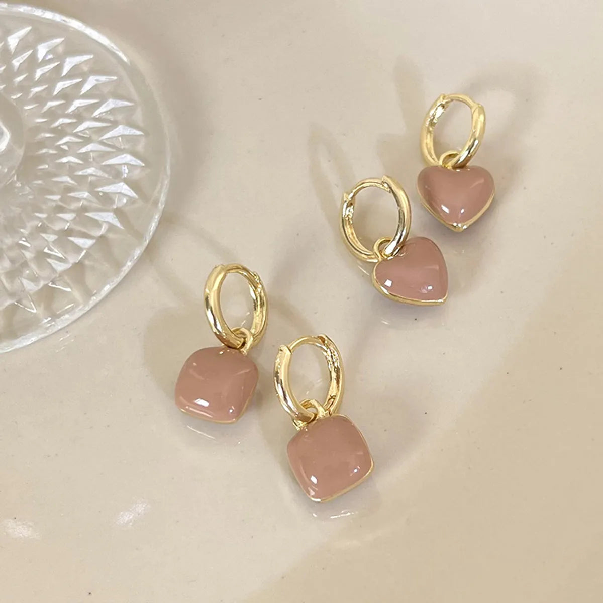 1 Pair Retro Sweet Heart Shape Alloy Gold Plated Drop Earrings