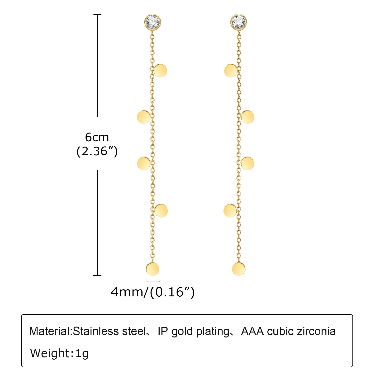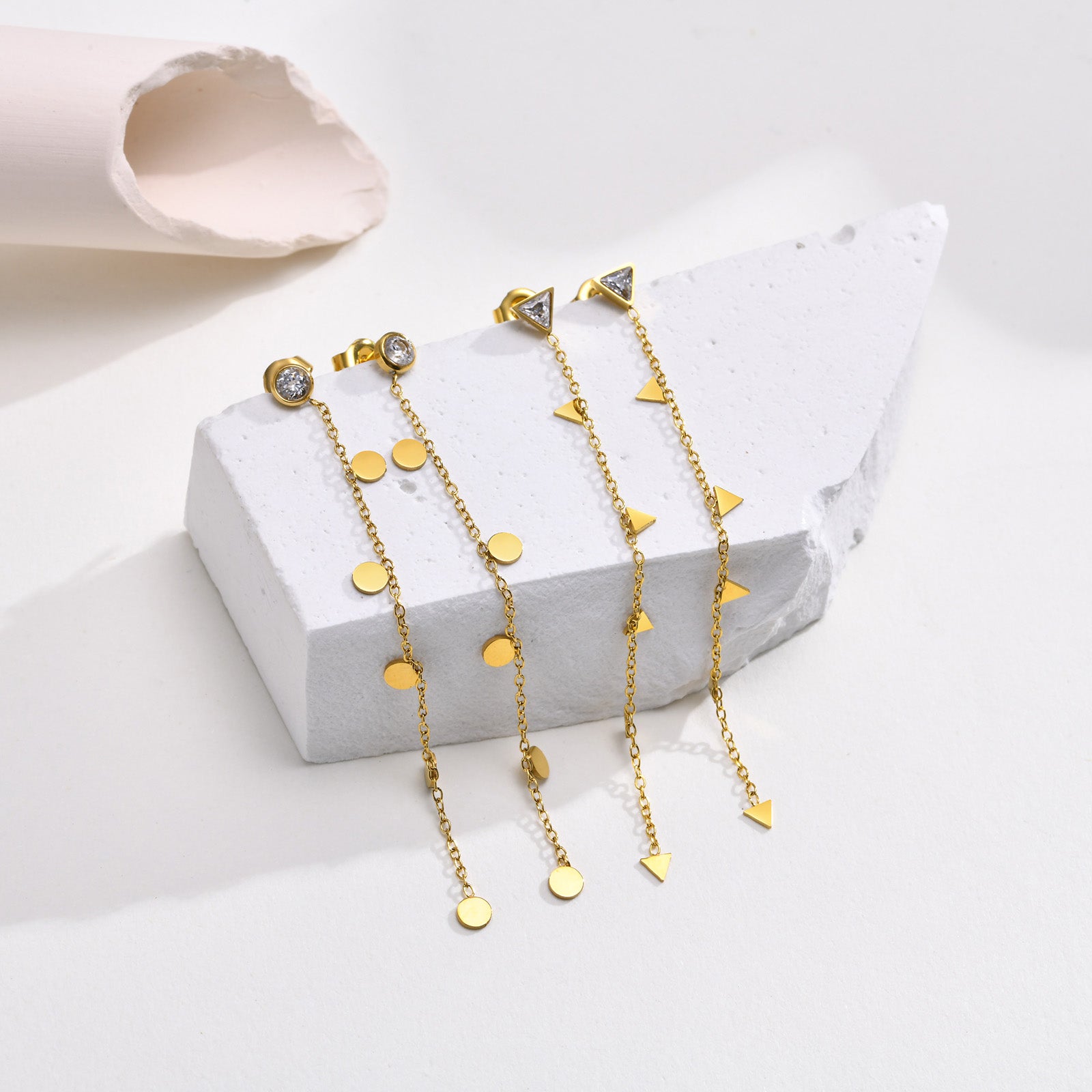 1 Pair Simple Style Classic Style Triangle Round Plating Inlay Stainless Steel Zircon 18k Gold Plated Drop Earrings