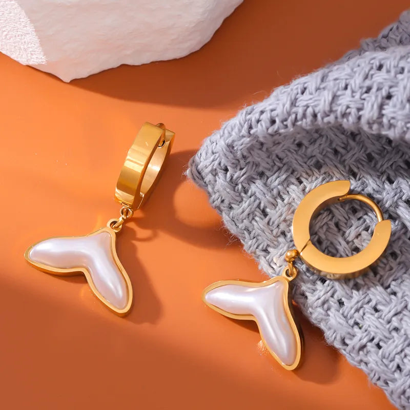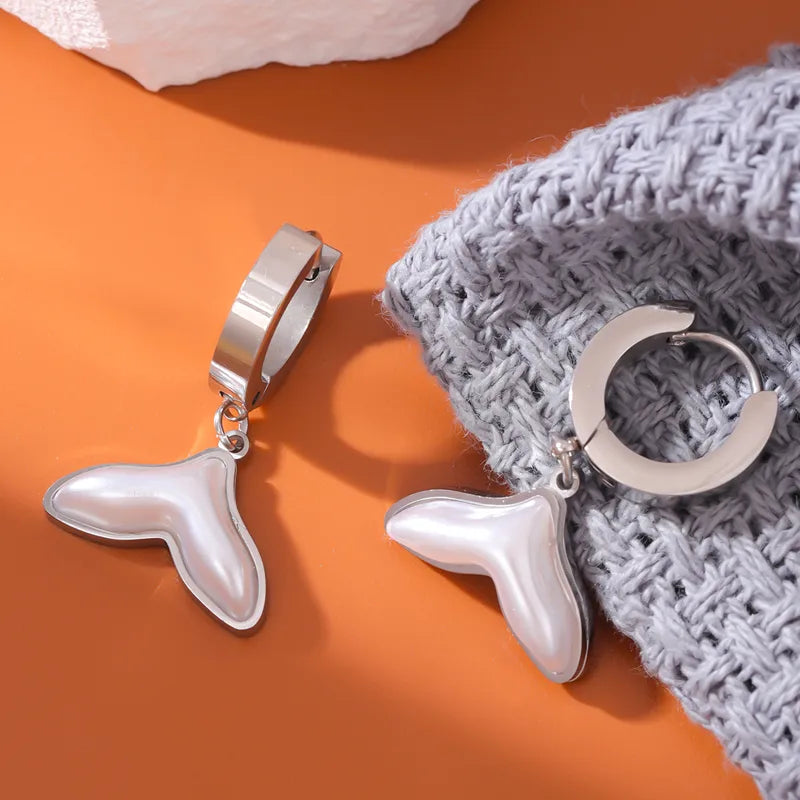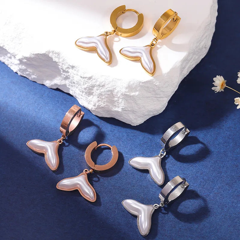 1 Pair Simple Style Fish Tail Inlay Titanium Steel Pearl Drop Earrings