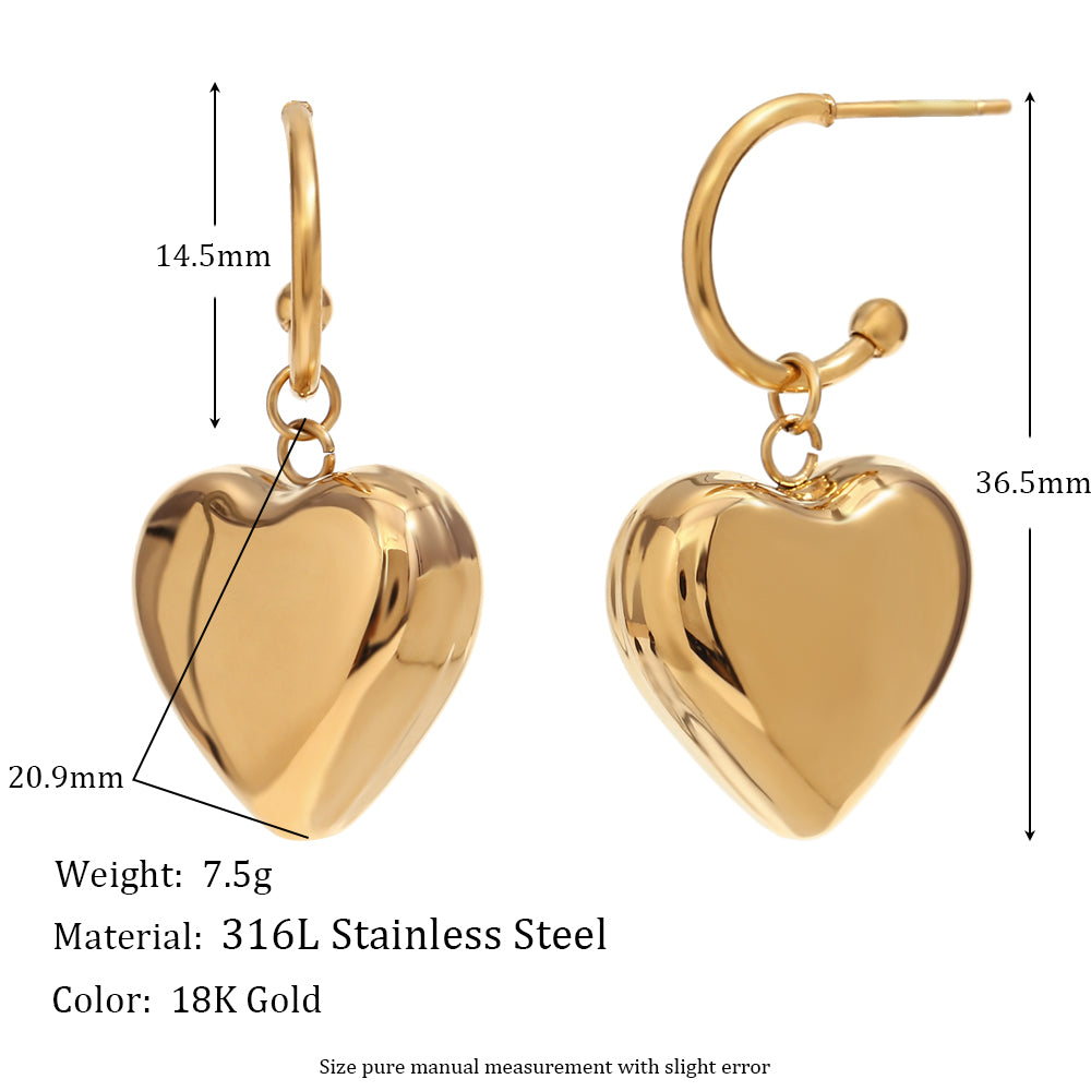 1 Pair Simple Style Heart Shape Plating Stainless Steel 18k Gold Plated Drop Earrings