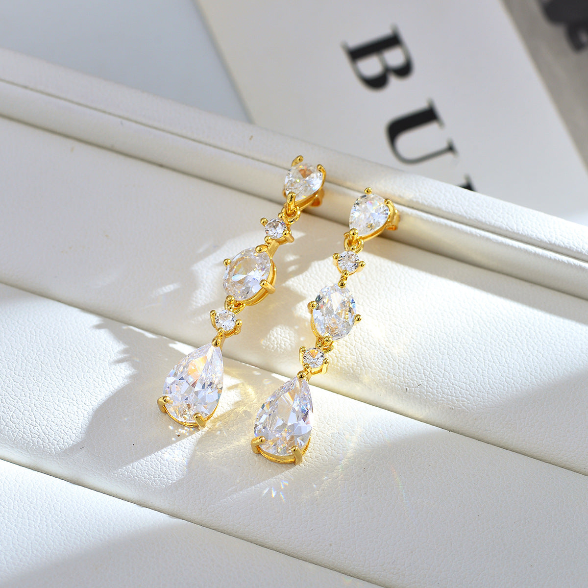 1 Pair Simple Style Water Droplets Inlay Copper Zircon Drop Earrings