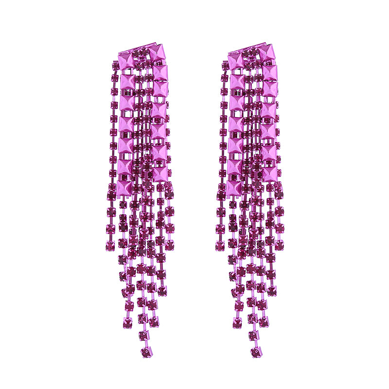 1 Pair Sweet Tassel Inlay Alloy Rhinestones Drop Earrings