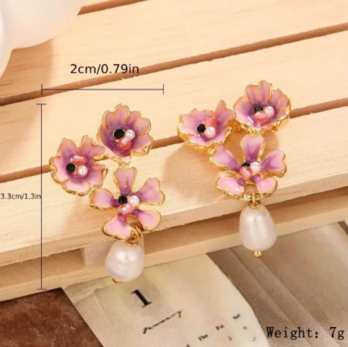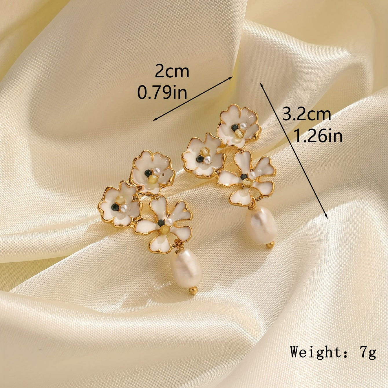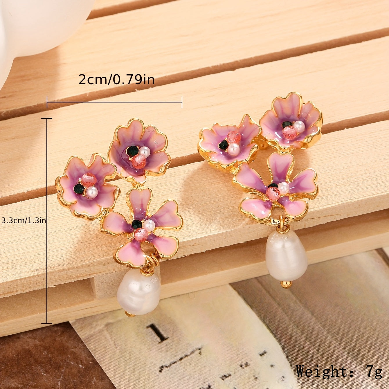 1 Pair Vacation Sweet Flower Enamel Inlay Freshwater Pearl Copper Freshwater Pearl 18K Gold Plated Drop Earrings