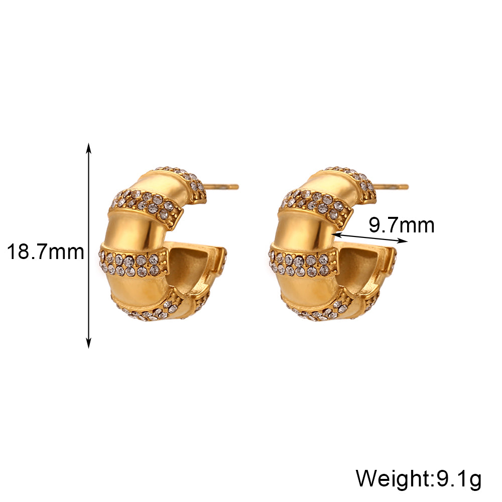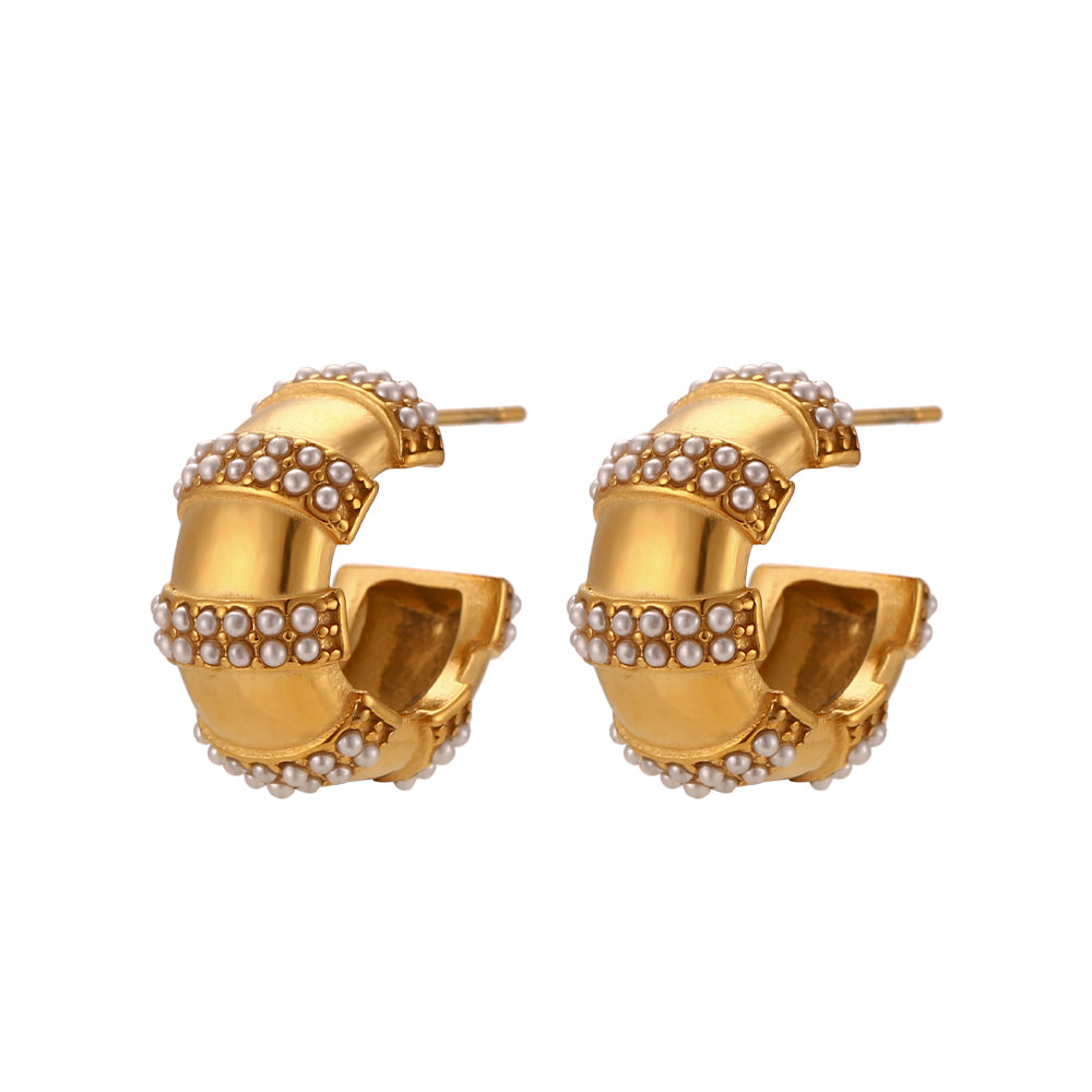 1 Pair Vintage Style C Shape Plating Inlay Stainless Steel Rhinestones Pearl 18k Gold Plated Ear Studs