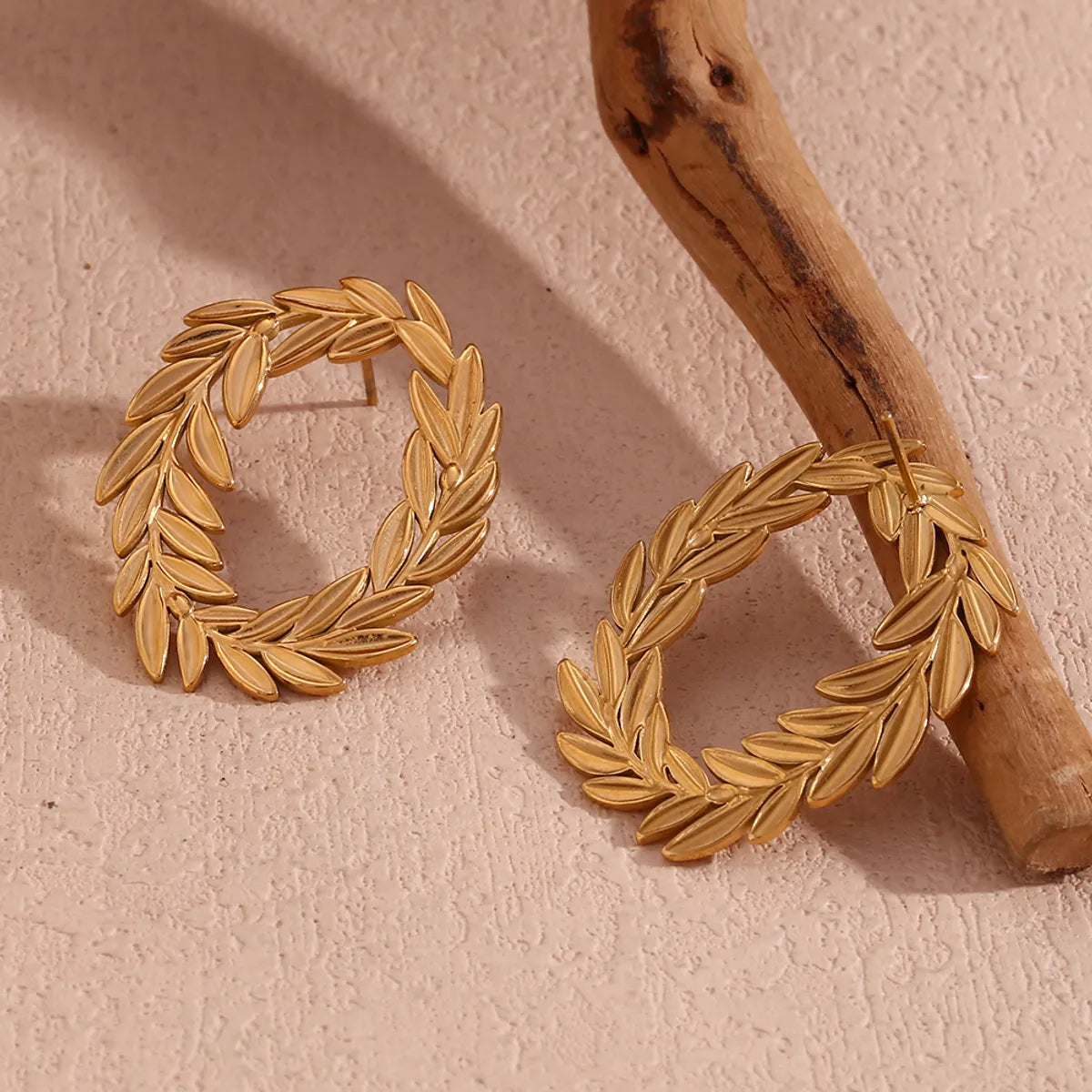 1 Pair Vintage Style Simple Style Leaves Plating Stainless Steel 18k Gold Plated Ear Studs