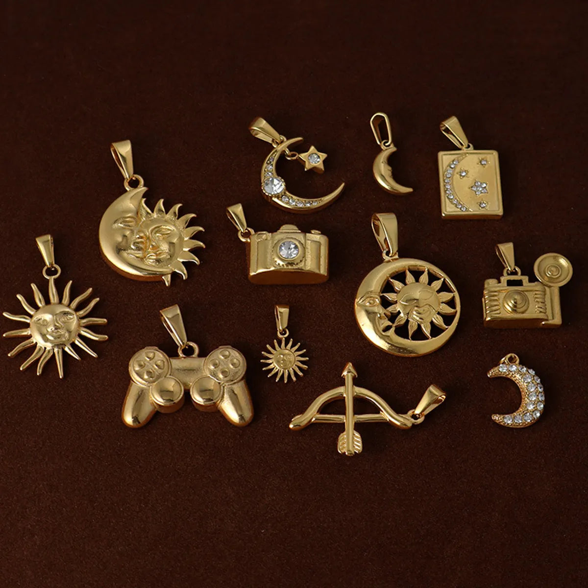 1 Piece 14.1*11.2mm 18.8*13mm 304 Stainless Steel 316 Stainless Steel 24K Gold Plated Sun Moon Pendant